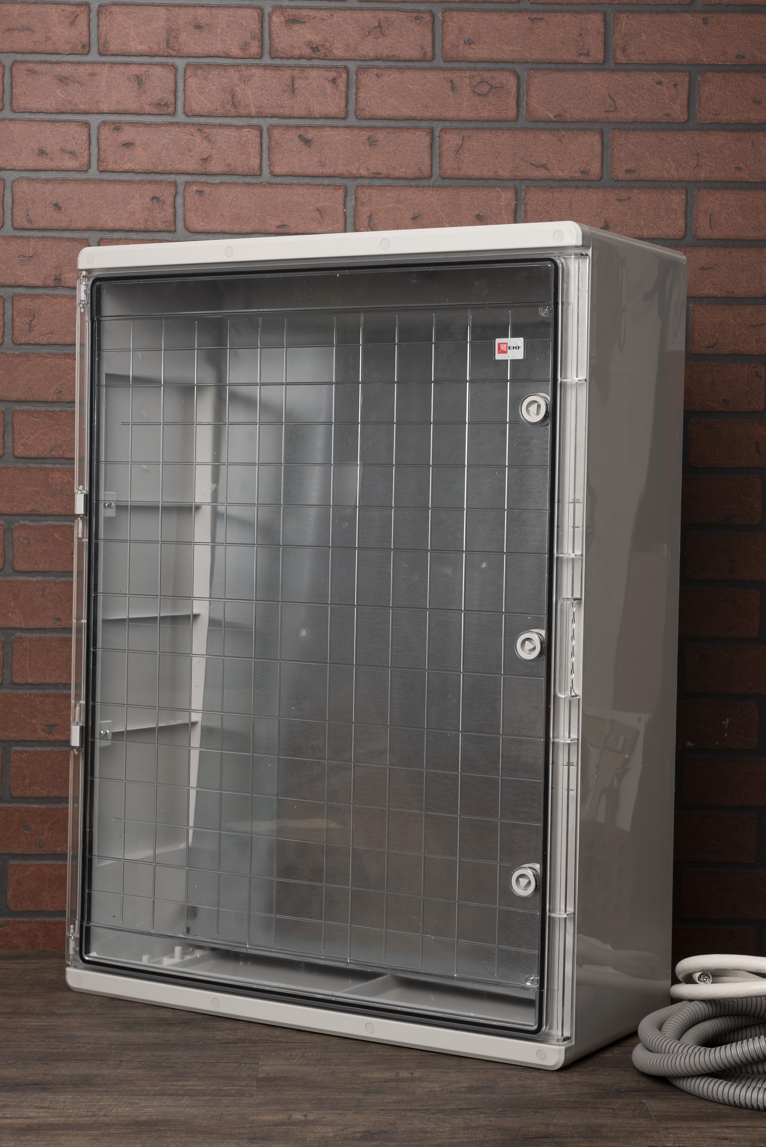 Щиты пластиковые ЩМП-П IP65 навесного исполнения с монтажной панелью предназначены для установки модульного и силового электрооборудования для сборки щитов автоматизации, распределения и управления. Щиты изготовлены из ударопрочного АБС-пластика и обеспечивают надежную защиту установленного оборудования. Степень защиты IP65 предотвращает проникновение пыли и влаги, обеспечивая безопасное функционирование внутренних компонентов шкафа. Поставляются с двумя типами дверей: глухой и прозрачной.