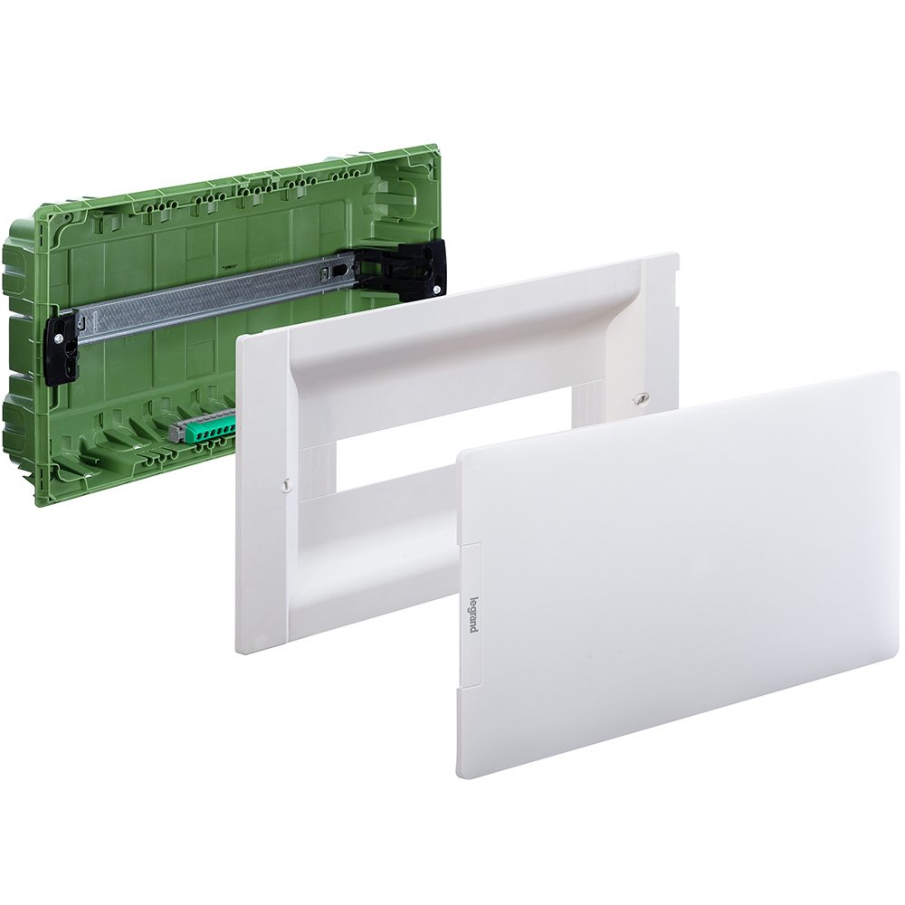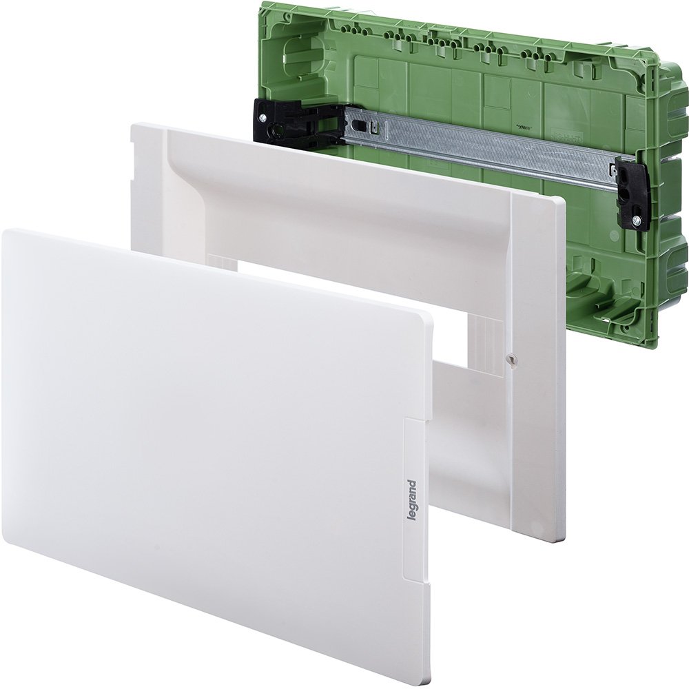 —Legrand Practibox Распределительный бокс скрытого монтажа IP40 IK07 1 рейка 18М с клеммиком заземления белая дверь, арт 401716