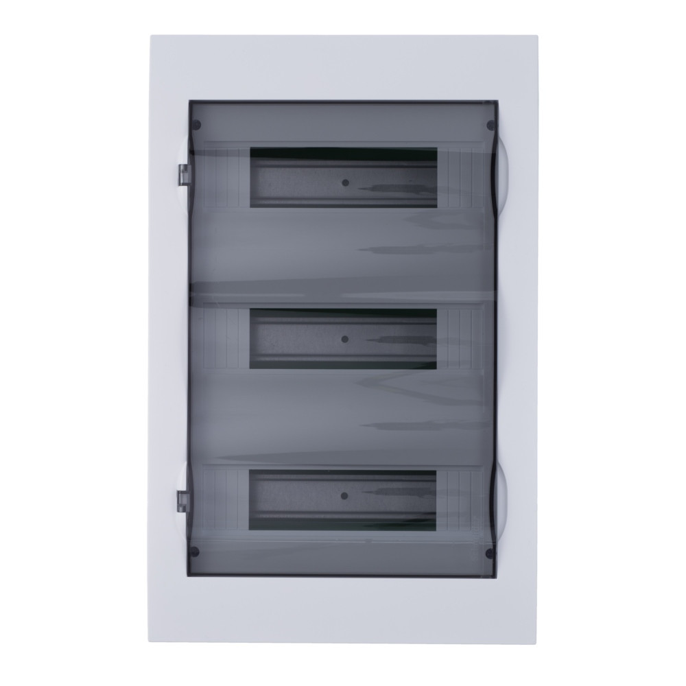 Распределительный щиток Schneider Electric серии Easy9 Box предназначен для установки аппаратов защиты и управления бытовой электроустановки. Щиток вешается на стену, имеет 3 DIN-рейки для установки 36 аппаратов по 18 мм. Прозрачная дверь щитка может быть установлена с правой или левой стороны. Щит Sсhneider Electric Easy9 Box на 100% совместим с модульным оборудованием DEKraft.