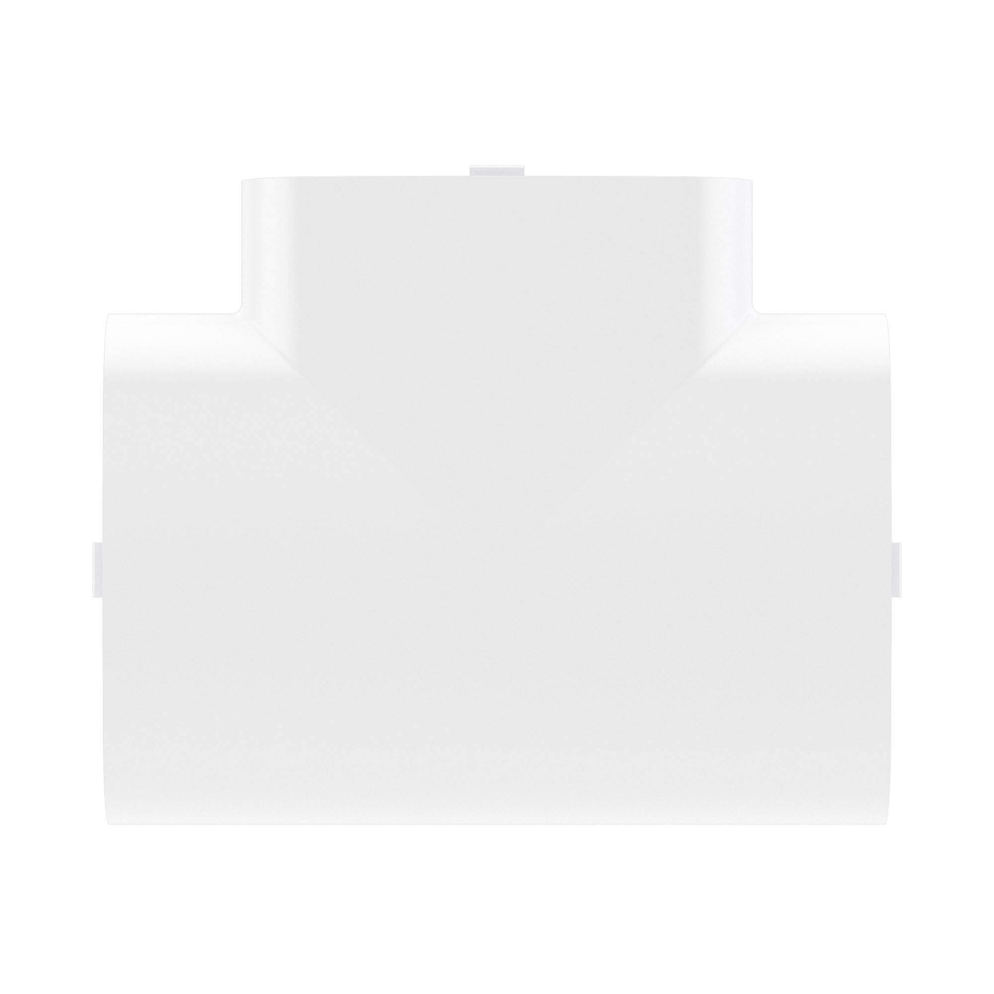Тройник используется для маскировки мест Т-образных стыков. Аксессуар совместим с кабель-каналами 90х50 мм. Материал: накладка – АБС-пластик; база и разделители – ПП. Цвет - белый.