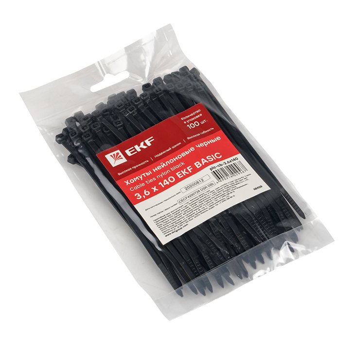 —EKF Basic Хомут нейлоновый черный (3,6х140) (100шт.), арт plc-cb-3.6x140