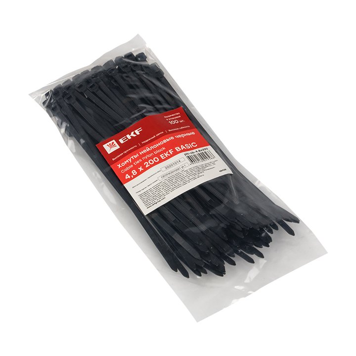 —EKF Basic Хомут нейлоновый черный (4,8х200) (100шт.), арт plc-cb-4.8x200