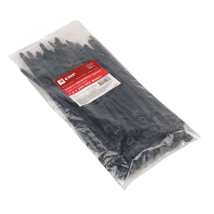 —EKF Basic Хомут нейлоновый черный (7,2х250) (100шт.), арт plc-cb-7.2x250