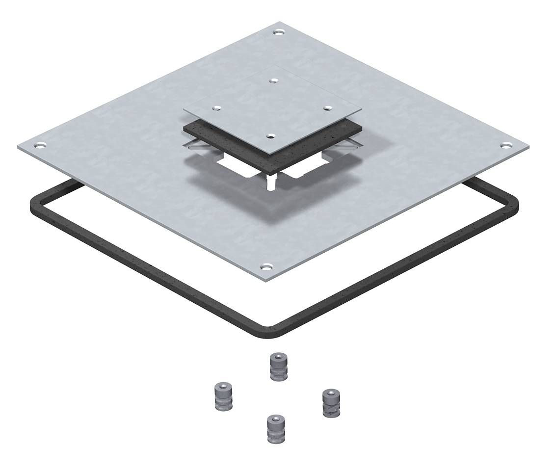 Крышка монтажного основания UZD250-3 с отверстием для установки напольного бокса Telitank. Монтажное отверстие, заглубленное на 3 мм, для последующего закрытия заглушкой.