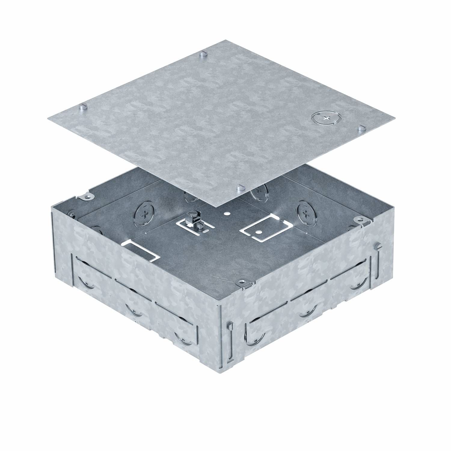 Квадратный встраиваемый корпус для резервуара изделия GES4-2 для применения в бесшовных полах во внутренних помещениях. С отверстиями для ввода кабеля (M25) со всех четырех сторон. При поставке встроенный корпус закрыт защитной монтажной крышкой.Минимальная монтажная глубина составляет 70 мм, диапазон выравнивания + 30 мм.