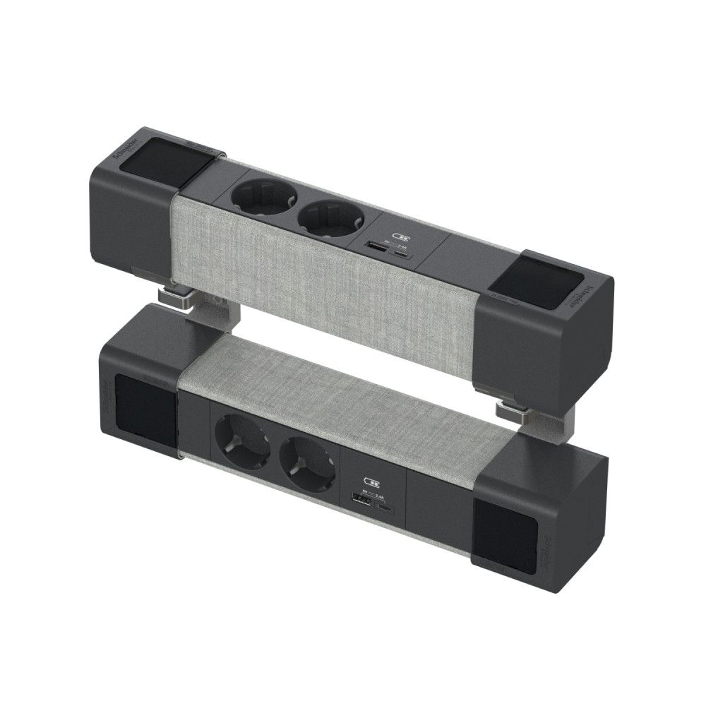 SE Unica System+ Блок двойной на струбцинах 2х(2хРоз.+2USB A/C) АНТР/СЕРАЯ ТКАНЬ от производителя Schneider Electric. Артикул производителя INS44401.