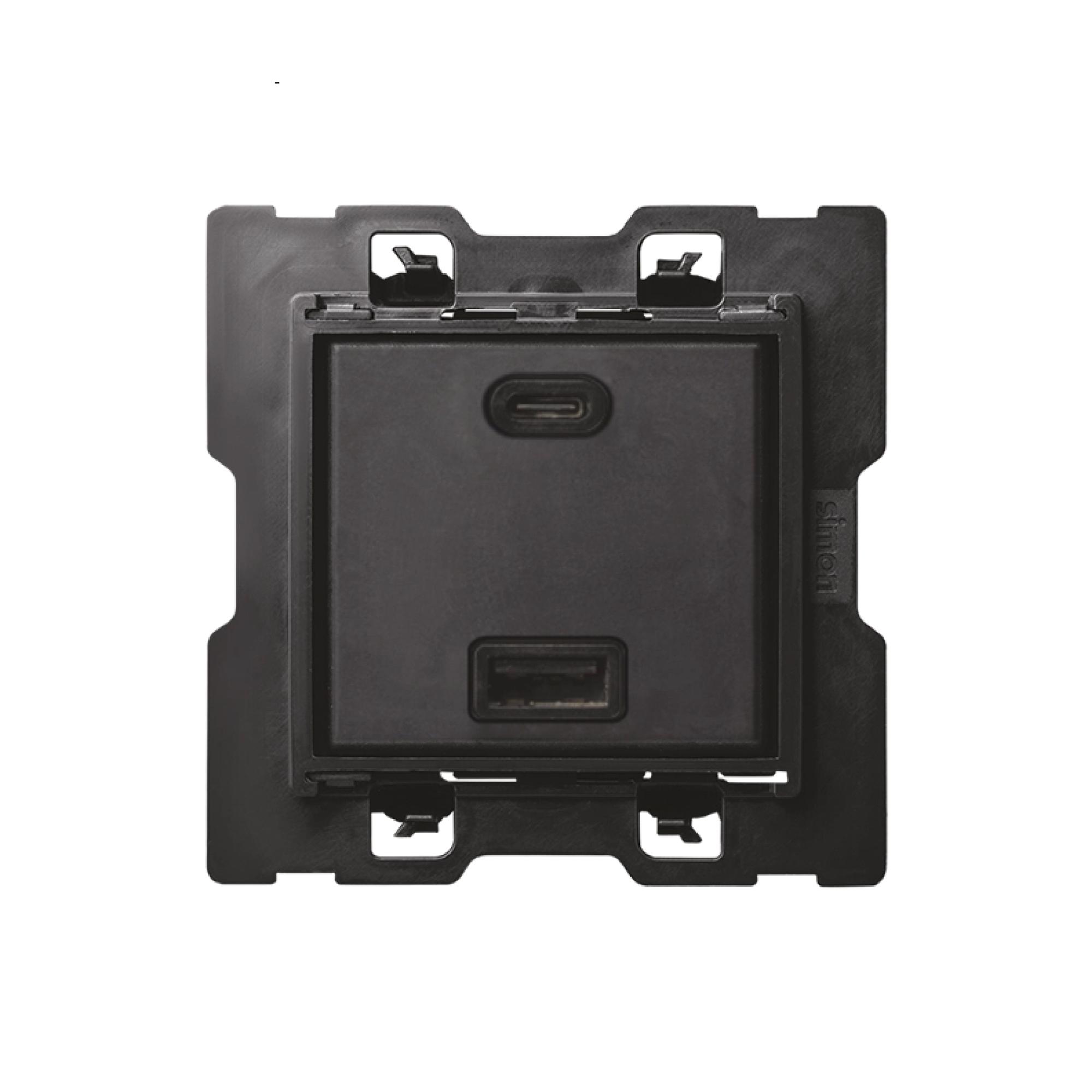 —Simon 100 Зарядное устройство USB A+C QuickCharge 230В~ c 2 выходами 3.1A 9В S100, арт 10000296-039