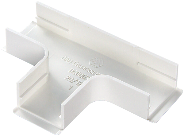 Т-образное ответвление с разделителем. Дает возможность разделения слаботочных и электрических сетей, а так же плавного перехода на более меньшие сечения кабельного канала