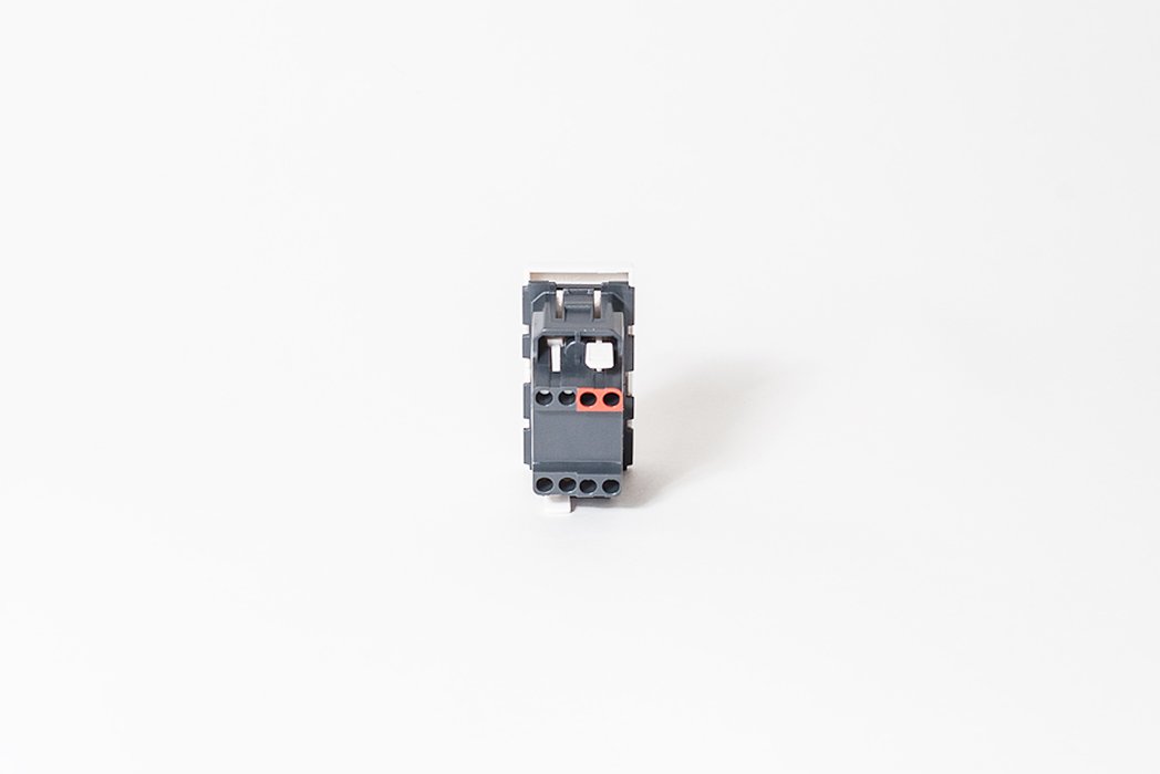 Выключатель одноклавишный 22,5х45 белый, с безвинтовым зажимом.
