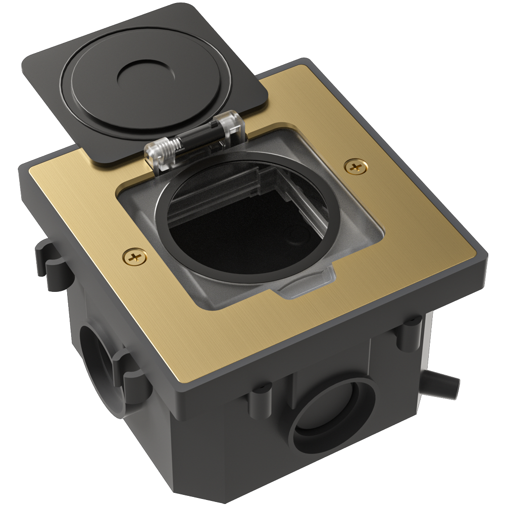 DFB2MRG. Напольные лючки Donel – решение для организации рабочих мест, как в открытых пространствах типа «Open Space», так и в индивидуальных помещениях и комнатах переговоров, предназначены для монтажа модульных электроустановочных изделий 45х45 в плиты фальш-пола или в бетонный пол.