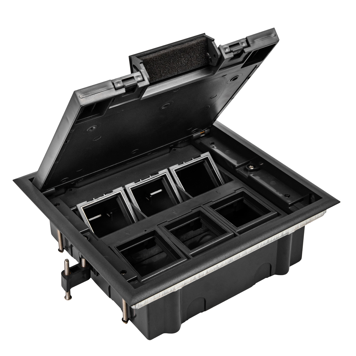• Решения для задач по организации рабочих мест в офисных пространствах типа "open-space" или в помещениях любого другого типа, где используется прокладка кабельных трасс под полом (в полу)