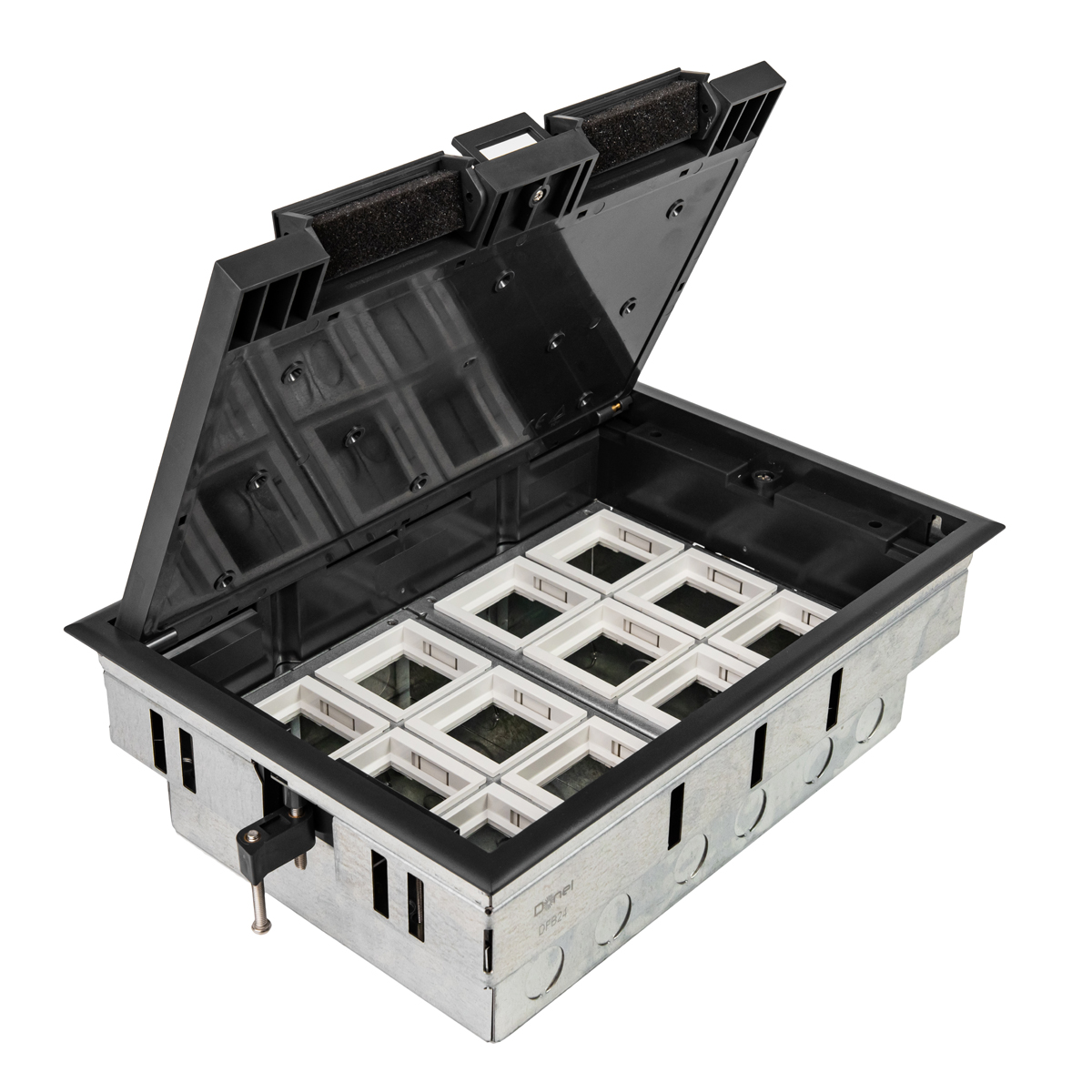 • Решения для задач по организации рабочих мест в офисных пространствах типа "open-space" или в помещениях любого другого типа, где используется прокладка кабельных трасс под полом (в полу)