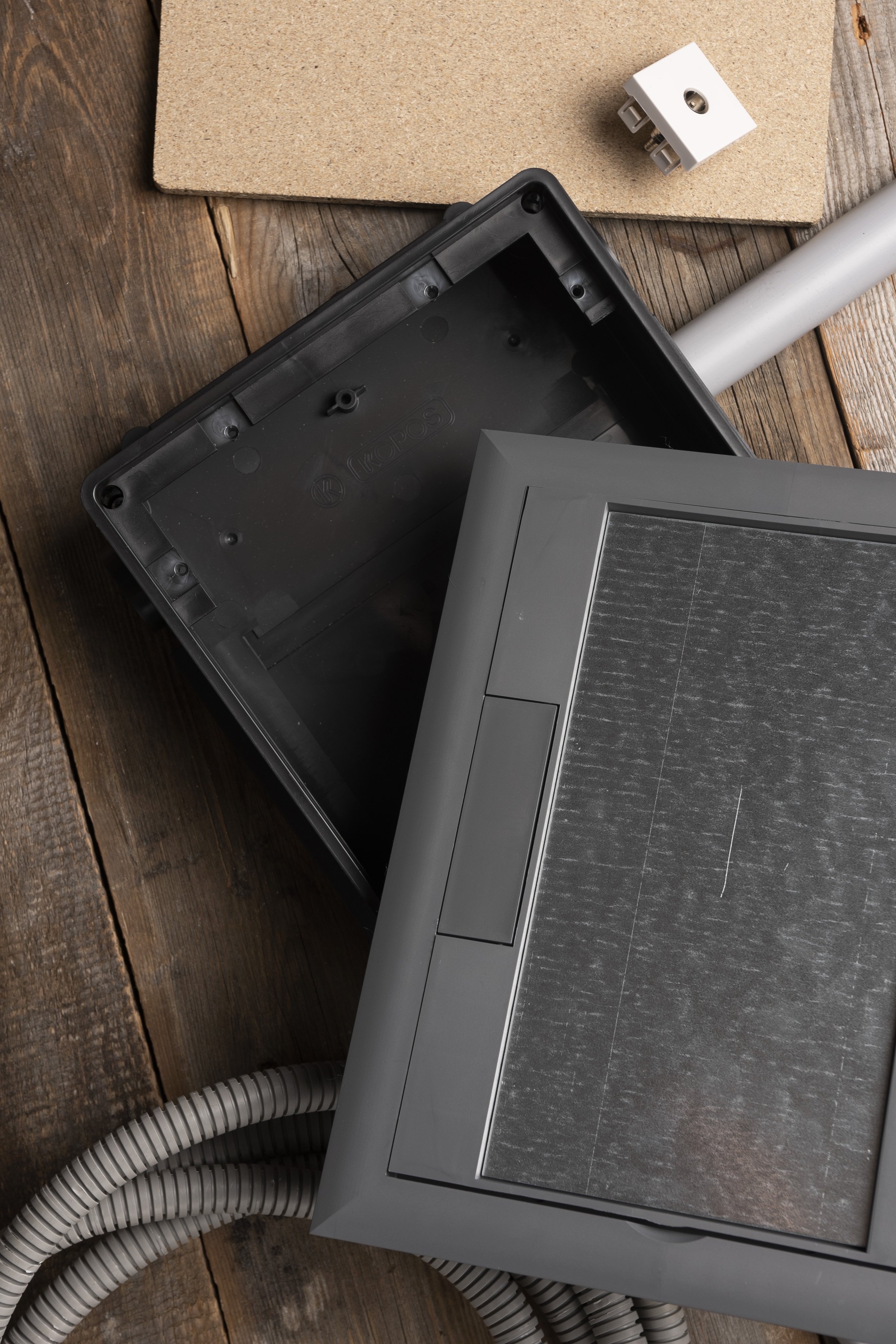 Лючок под розетки – это изделие прямоугольной формы, для компактного размещения электрических и информационных розеток. Лючки могут использоваться самостоятельно при установке в фальш-пол или вместе с коробкой для заливки в бетон, которая устанавливается в момент заливки стяжки. Лючки имеют вводы для установки кабелей внутри пола и выводы непосредственно к потребителю через крышку лючка. Внутри лючка есть посадочные модули (посты) стандарта 45*45 для установки розеток. Все лючки C-Line ударопрочные и выдерживают нагрузку до 153 кг.
