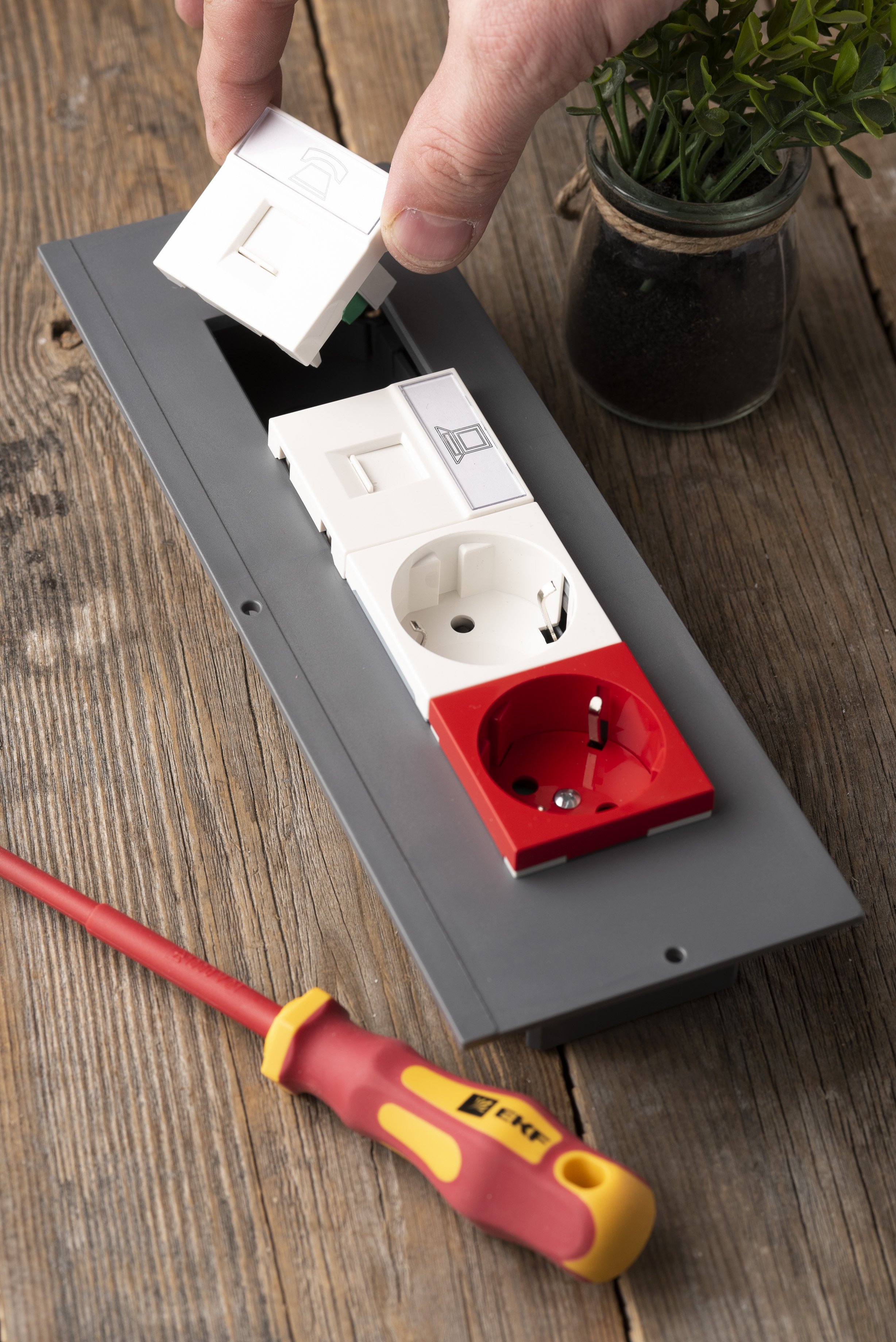 Лючок под розетки – это изделие прямоугольной формы, для компактного размещения электрических и информационных розеток. Лючки могут использоваться самостоятельно при установке в фальш-пол или вместе с коробкой для заливки в бетон, которая устанавливается в момент заливки стяжки. Лючки имеют вводы для установки кабелей внутри пола и выводы непосредственно к потребителю через крышку лючка. Внутри лючка есть посадочные модули (посты) стандарта 45*45 для установки розеток. Все лючки C-Line ударопрочные и выдерживают нагрузку до 153 кг.