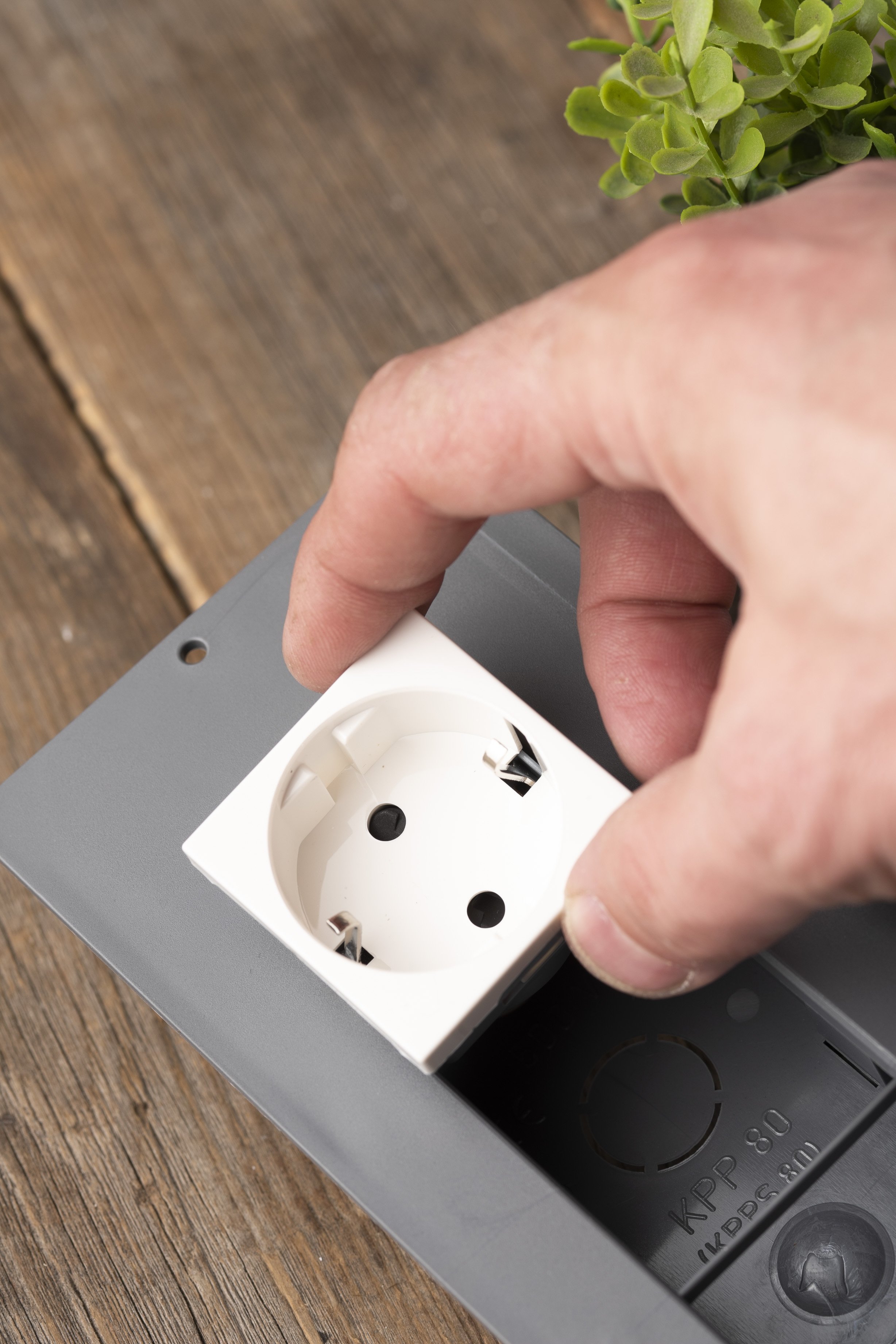 Модульные электроустановочные изделия для установки в напольные лючки C-Line и парапетный кабельный канал C-Line. Легкий монтаж