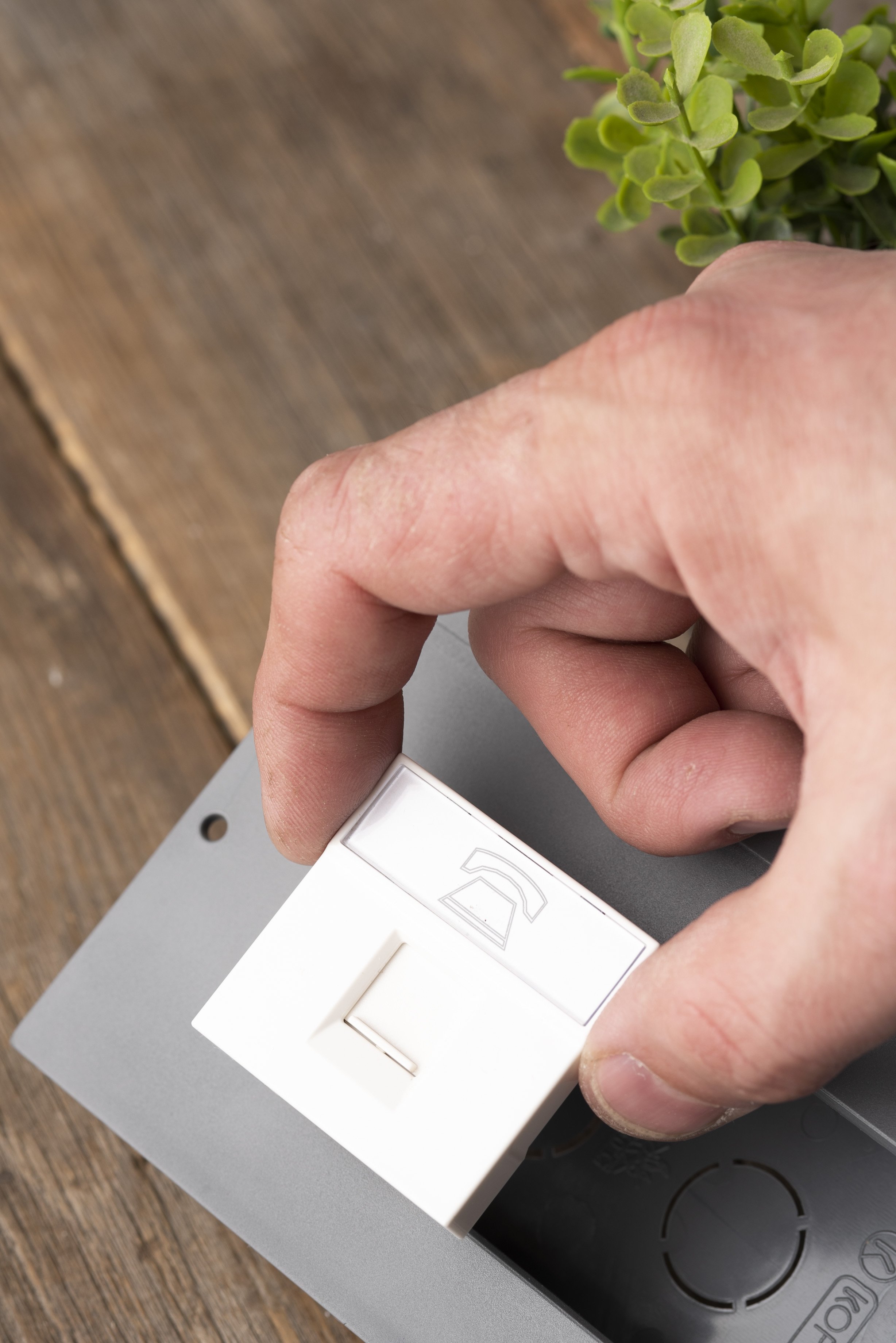 Модульные электроустановочные изделия для установки в напольные лючки C-Line и парапетный кабельный канал C-Line. Легкий монтаж