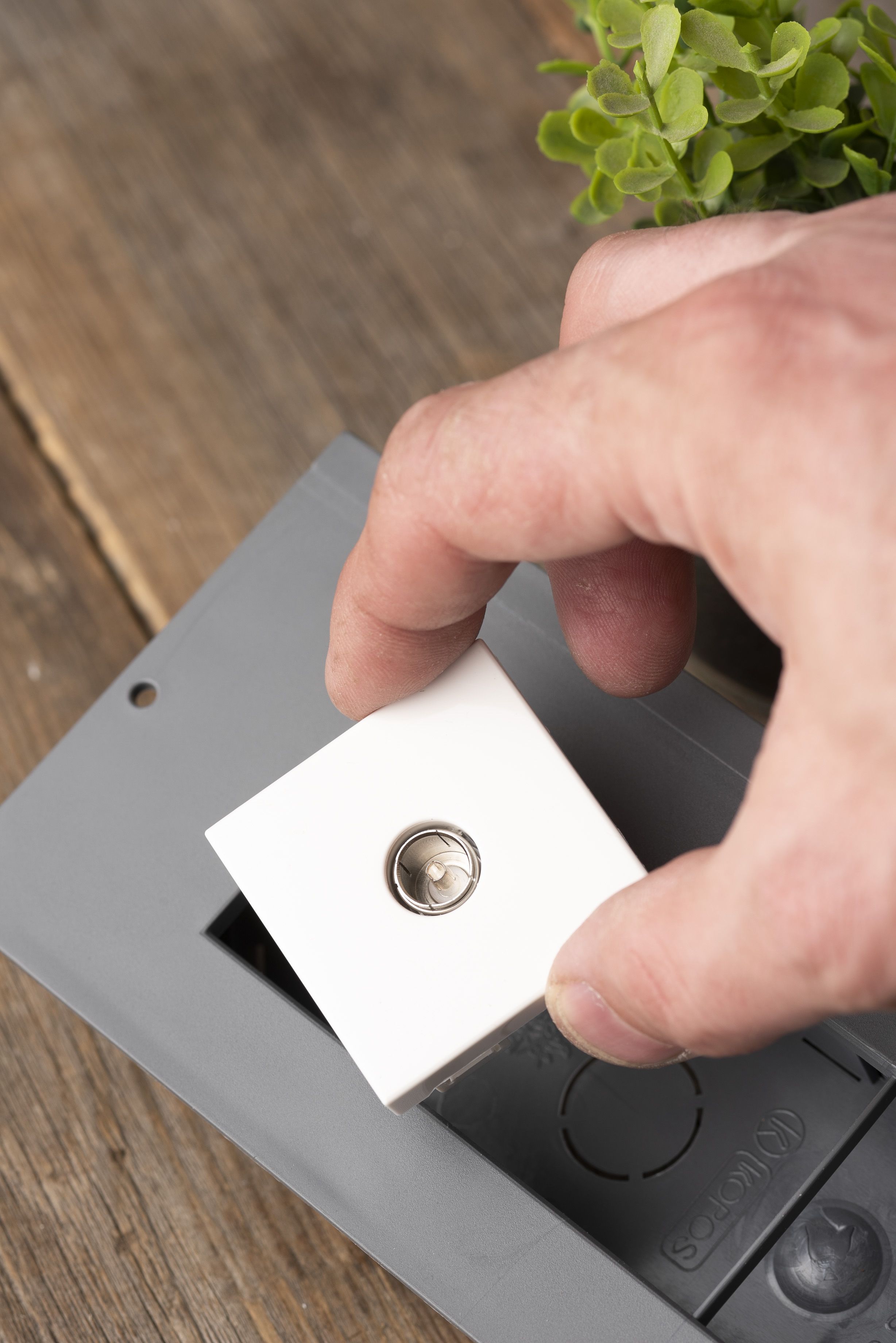 Модульные электроустановочные изделия для установки в напольные лючки C-Line и парапетный кабельный канал C-Line. Легкий монтаж