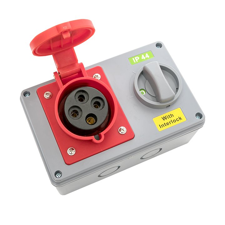 —EKF Розетка с блокировкой и выключателем 1424 3Р+РЕ 32А 380В IP44, арт ps-1424-32-380