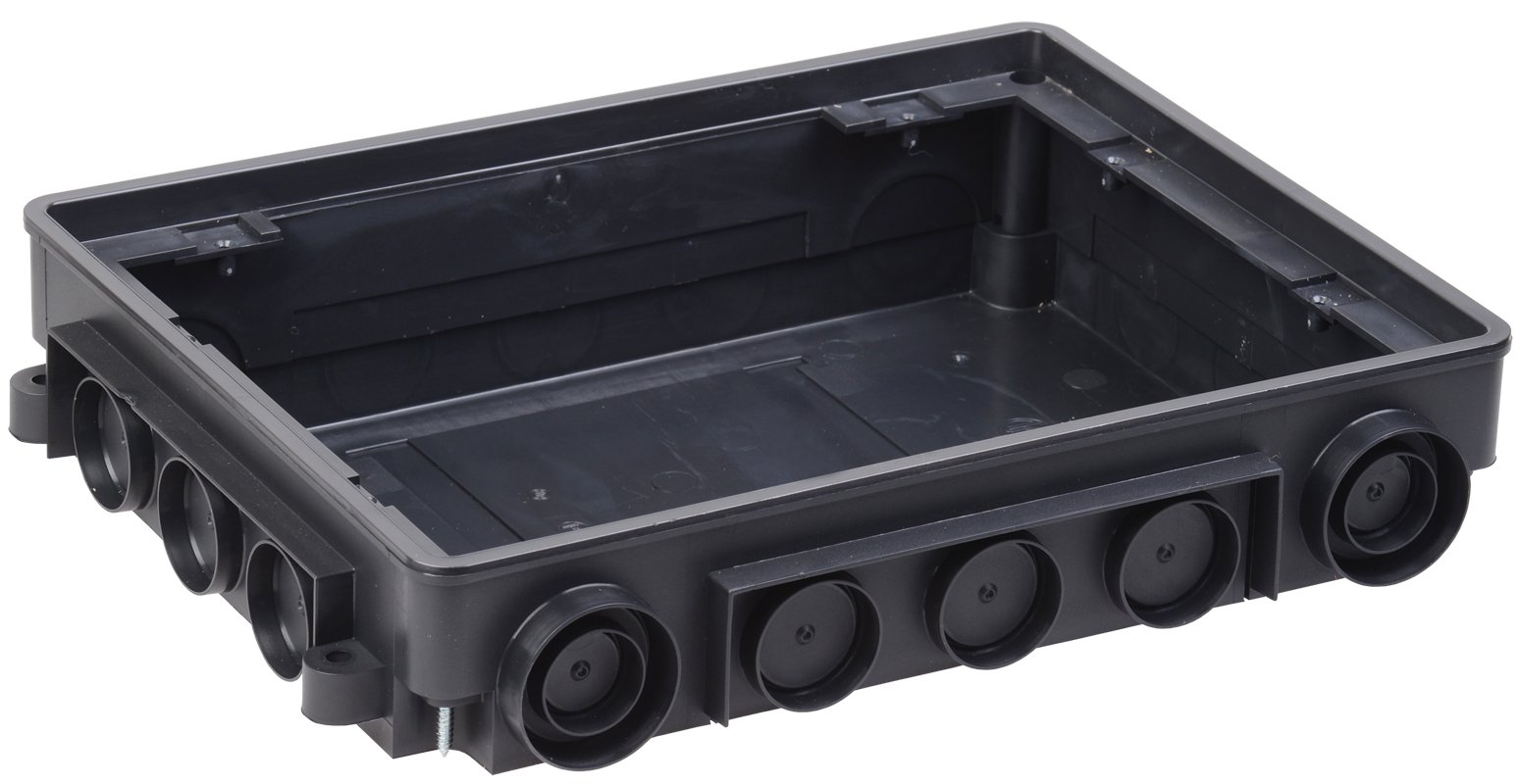 Коробка напольная ONFLOOR предназначена для установки в бетонные полы. После затвердения в коробку устанавливается напольный лючок на 12 модулей.