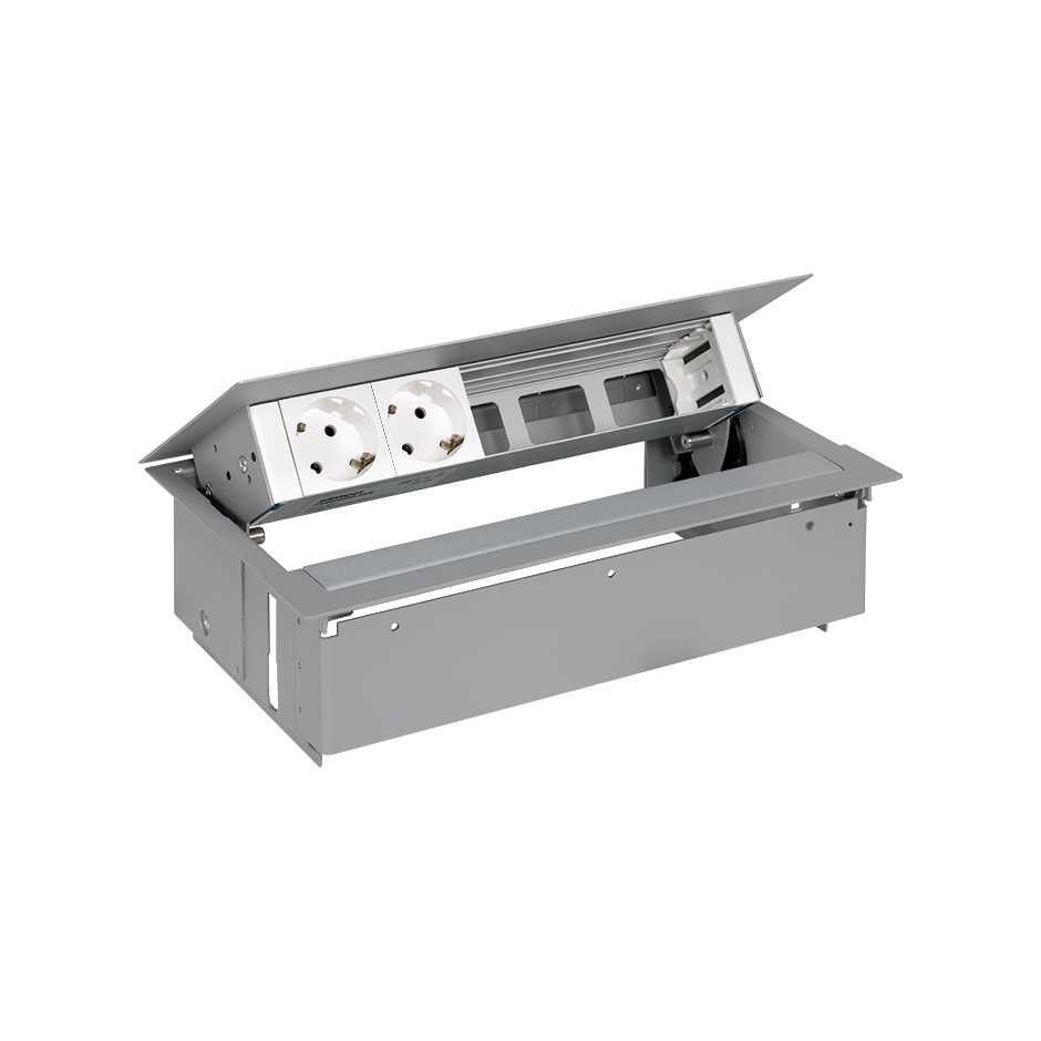 Simon 400 Алюминий Врезной розеточный блок с крышкой и мет. вводом, 2x2P+E, 3 пустых модуля от производителя Simon. Артикул производителя 45502000-133.