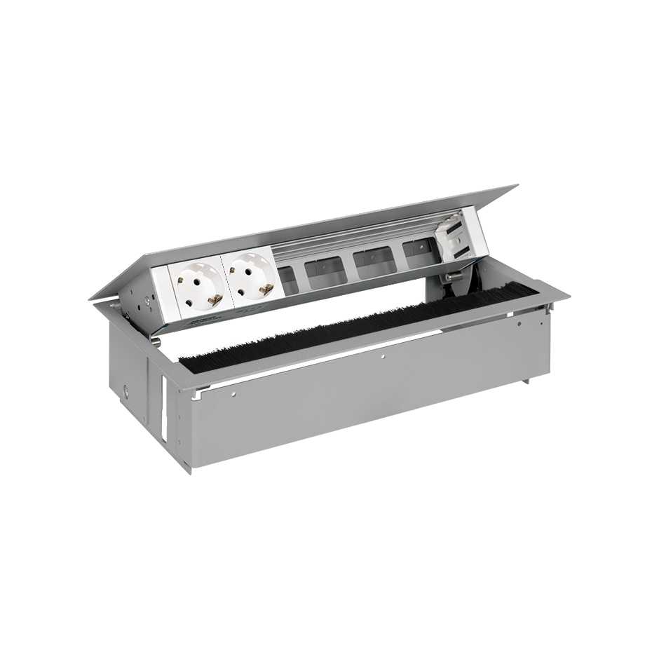 Simon 400 Алюминий Врезной розеточный блок с крышкой, ввод щетка, 2x2P+E, 4 пустых модуля от производителя Simon. Артикул производителя 44602000-133.