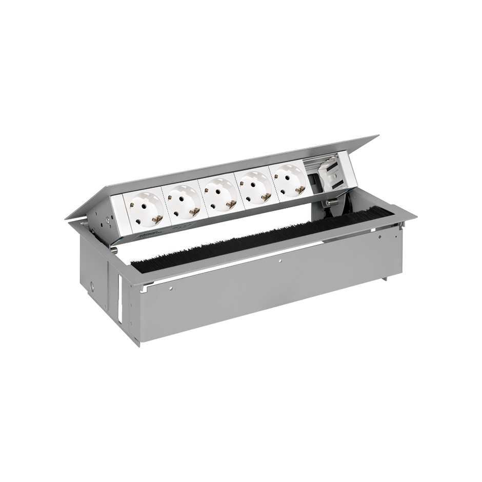 Simon 400 Алюминий Врезной розеточный блок с крышкой, ввод щетка, 5x2P+E, 1 пустое отвертие от производителя Simon. Артикул производителя 44605000-133.