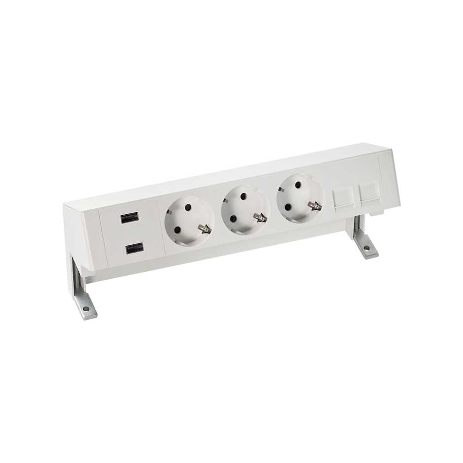 Simon 400 Белый Настольный розеточный блок, 3x2P+E, 2xUSB зарядное уст., адаптер для 2хRJ45, моноблок от производителя Simon. Артикул производителя 42523020-130.