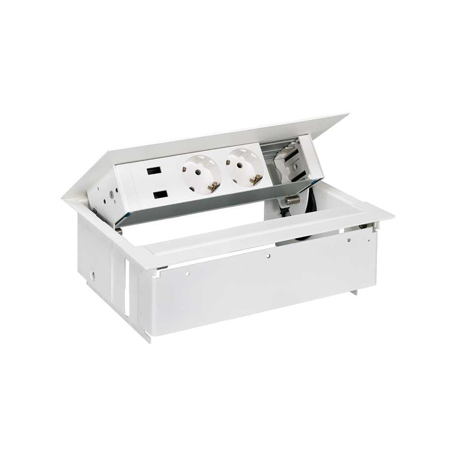 Simon 400 Белый Врезной розеточный блок с крышкой и мет. вводом, 2x2P+E, 2xUSB зарядное уст., 1 пустой модуль от производителя Simon. Артикул производителя 45422000-130.