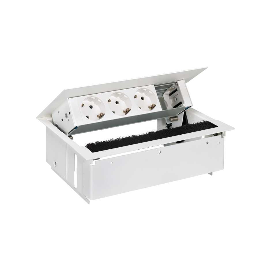 Simon 400 Белый Врезной розеточный блок с крышкой, ввод щетка, 3x2P+E, 1 пустое отвертие от производителя Simon. Артикул производителя 44403000-130.
