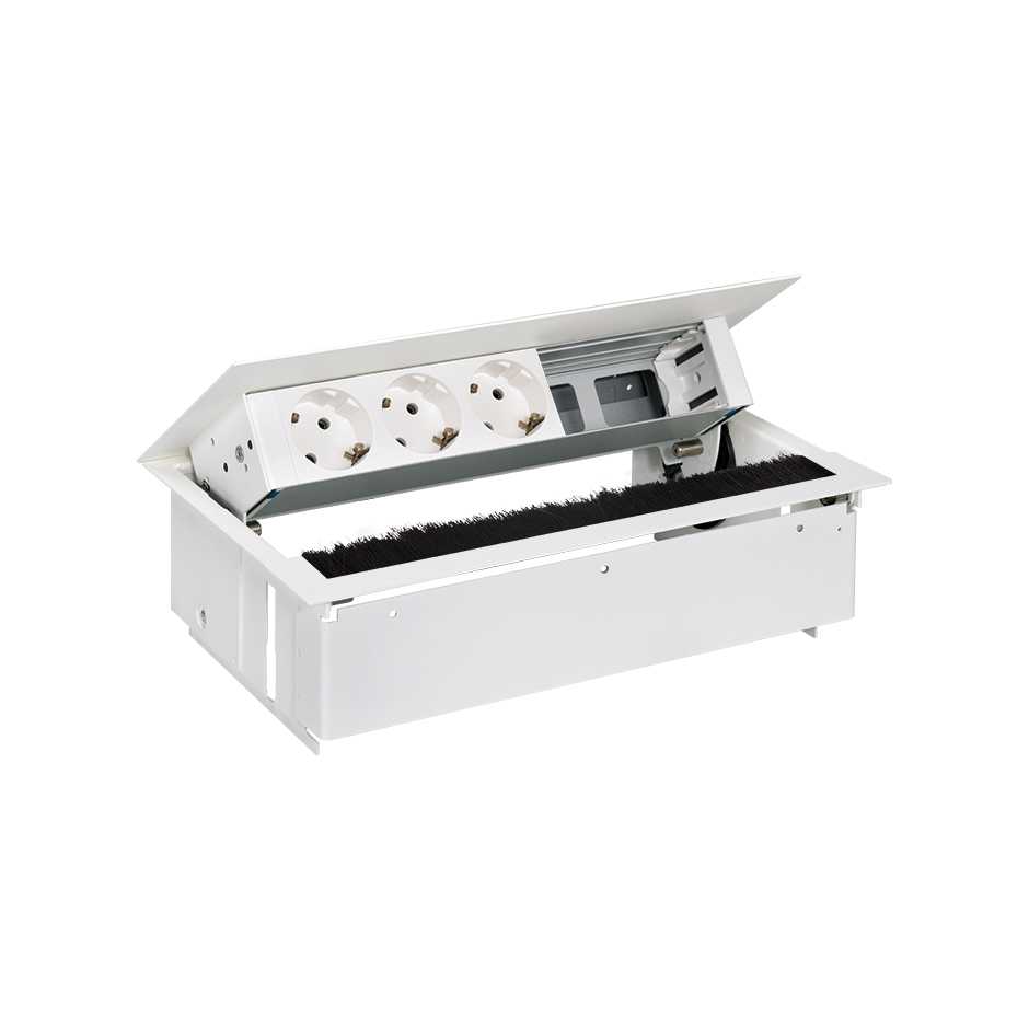 Simon 400 Белый Врезной розеточный блок с крышкой, ввод щетка, 3x2P+E, 2 пустых модуля от производителя Simon. Артикул производителя 44503000-130.