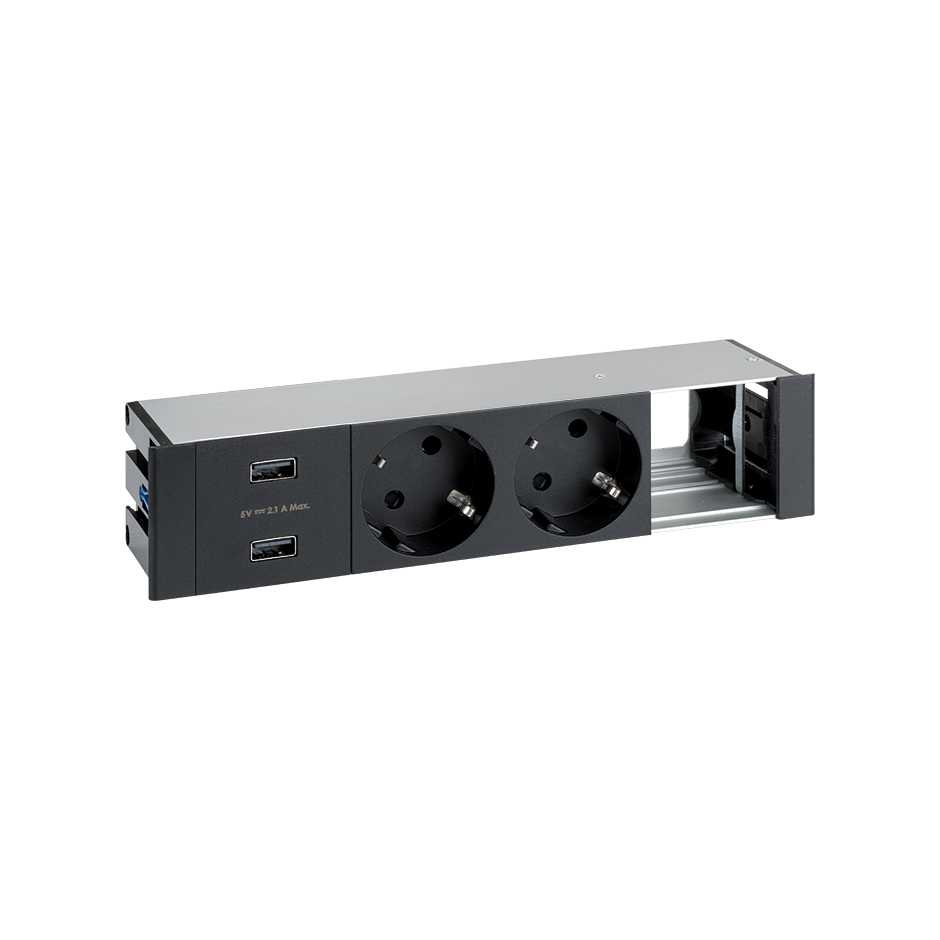 Simon 400 Черный Врезной розеточный блок с крышкой и мет. вводом, 2x2P+E, 2xUSB зарядное уст., 1 пустой модуль от производителя Simon. Артикул производителя 45422000-138.