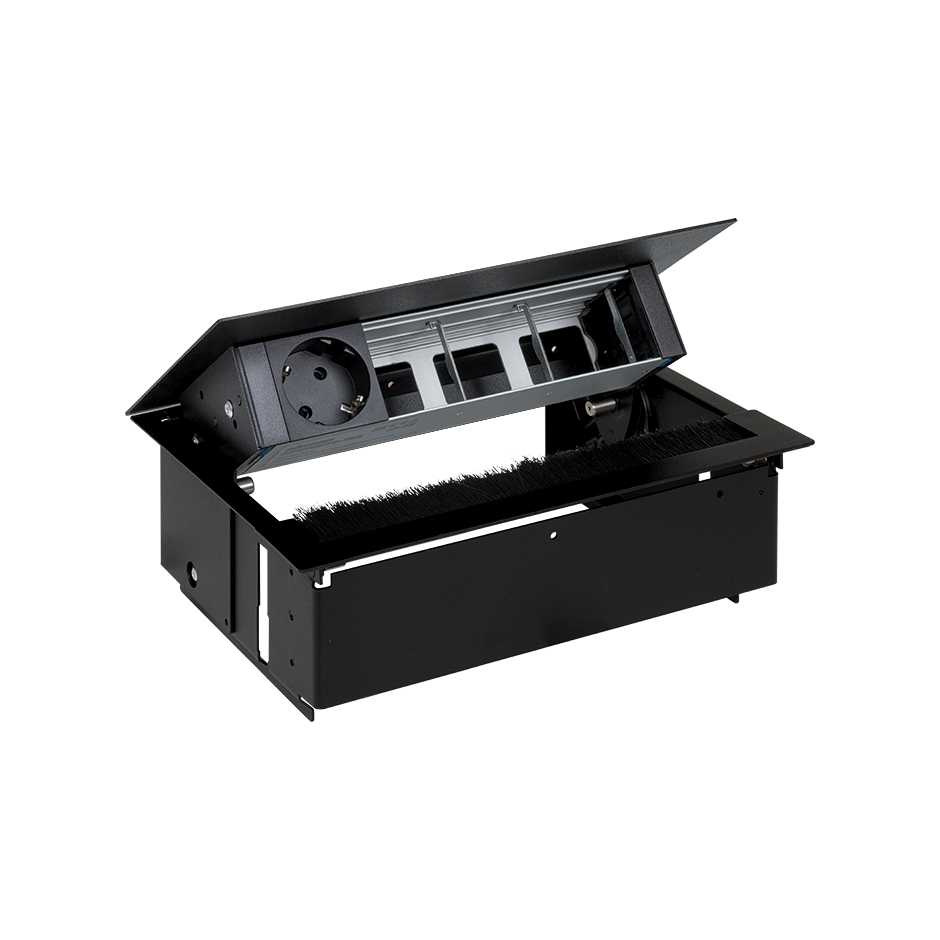 Simon 400 Черный Врезной розеточный блок с крышкой, ввод щетка, 1x2P+E, 3 пустых модуля от производителя Simon. Артикул производителя 44401000-138.