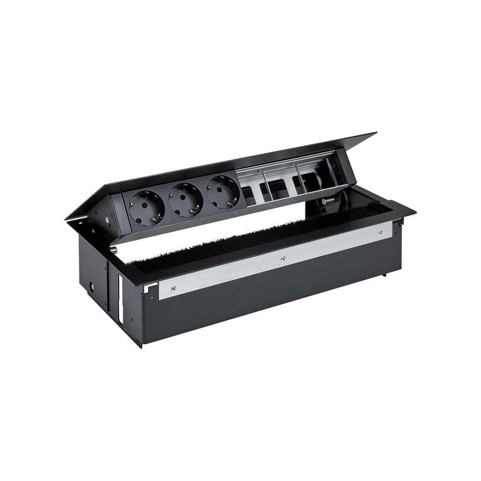 Simon 400 Черный Врезной розеточный блок с крышкой, ввод щетка, 3x2P+E, 3 пустых модуля от производителя Simon. Артикул производителя 44603000-138.