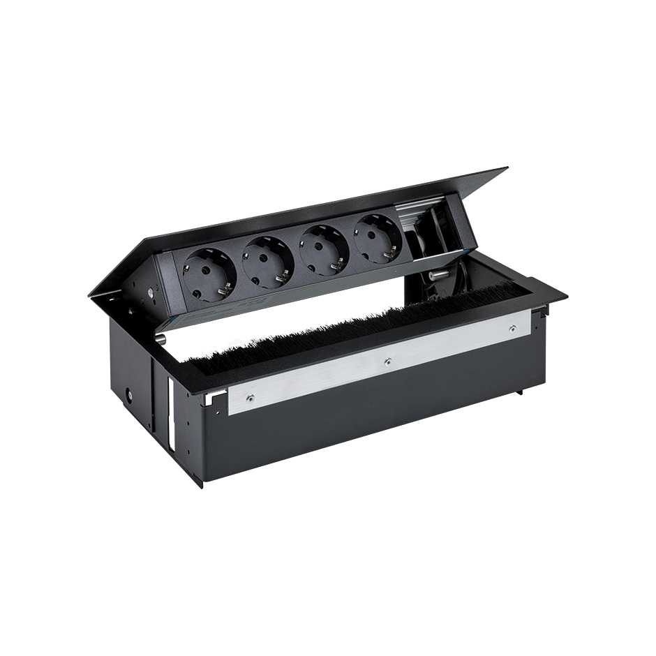 Simon 400 Черный Врезной розеточный блок с крышкой, ввод щетка, 4x2P+E, 1 пустое отвертие от производителя Simon. Артикул производителя 44504000-138.