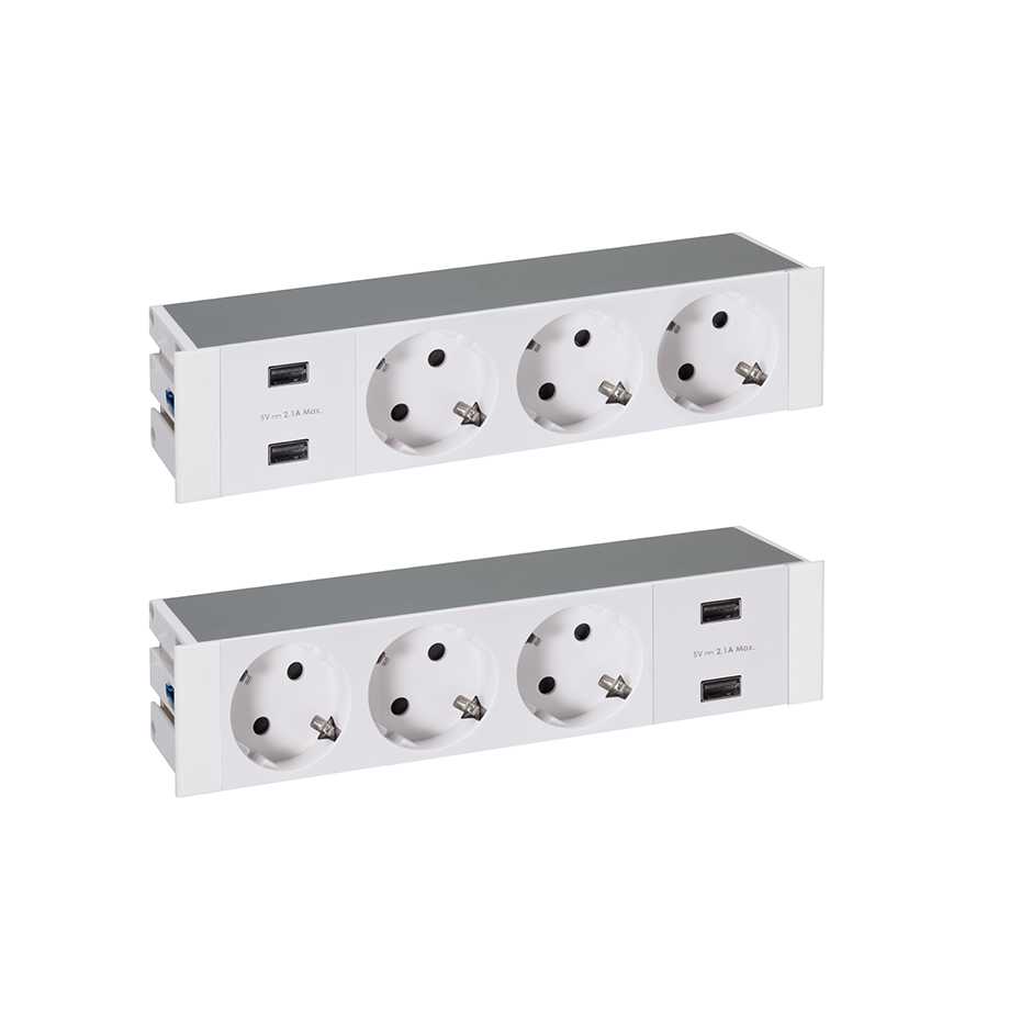 Simon 400 Двухсторонний врезной x8 розеточный блок, планка, 6x2P+E, 4xUSB з/у, белый, от производителя Simon. Артикул производителя 47423000-130.