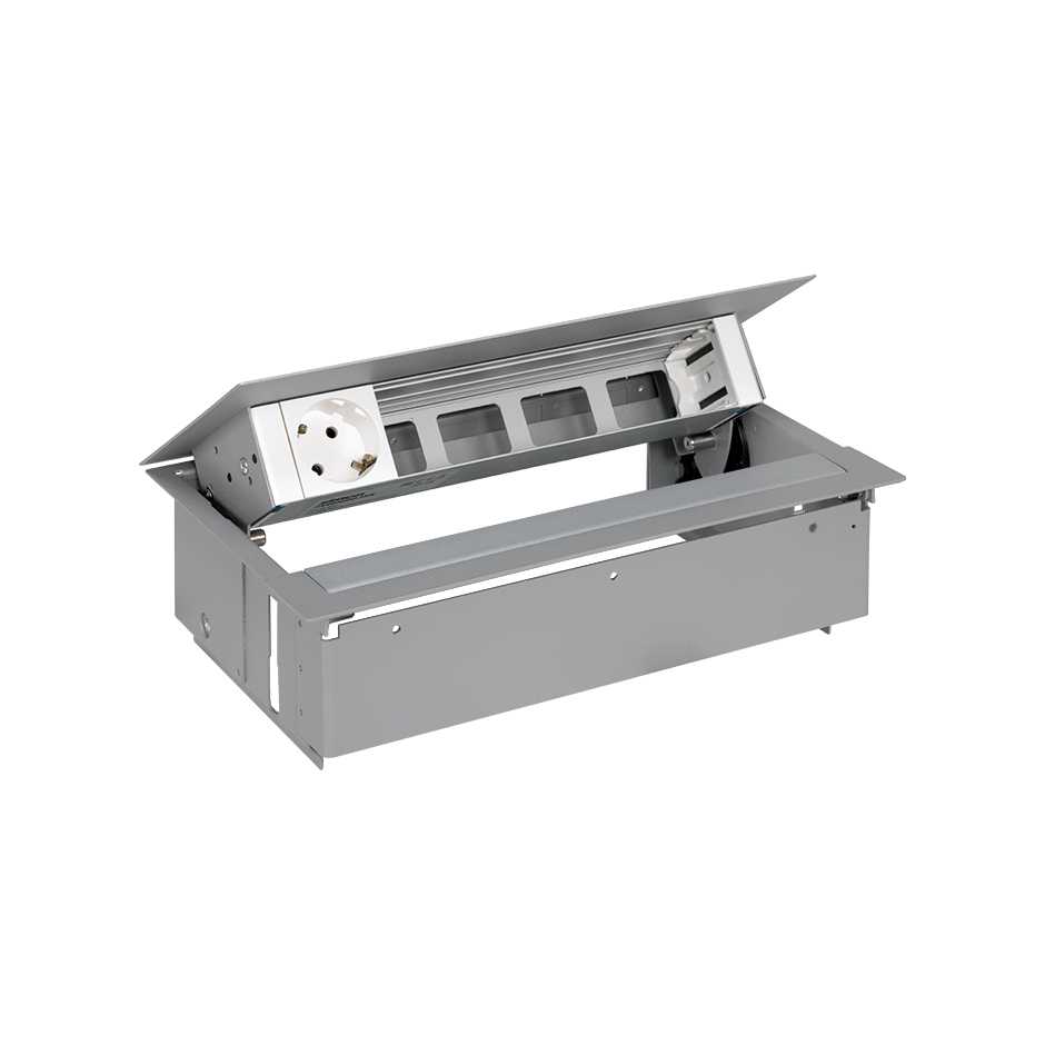 Simon 400 Врезной розеточный блок с крышкой и мет. вводом, 1x2P+E, 4 пустых модуля, квасцы от производителя Simon. Артикул производителя 45501000-133.
