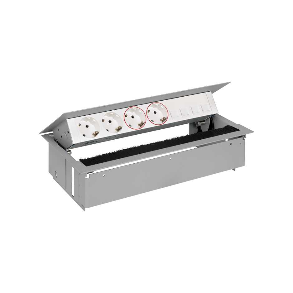 Simon 400 Врезной x6 розеточный блок, щетка, 2x2P+E, 2x2P+E UPS, 4хRJ45, Алюминий, от производителя Simon. Артикул производителя 44602240-133.