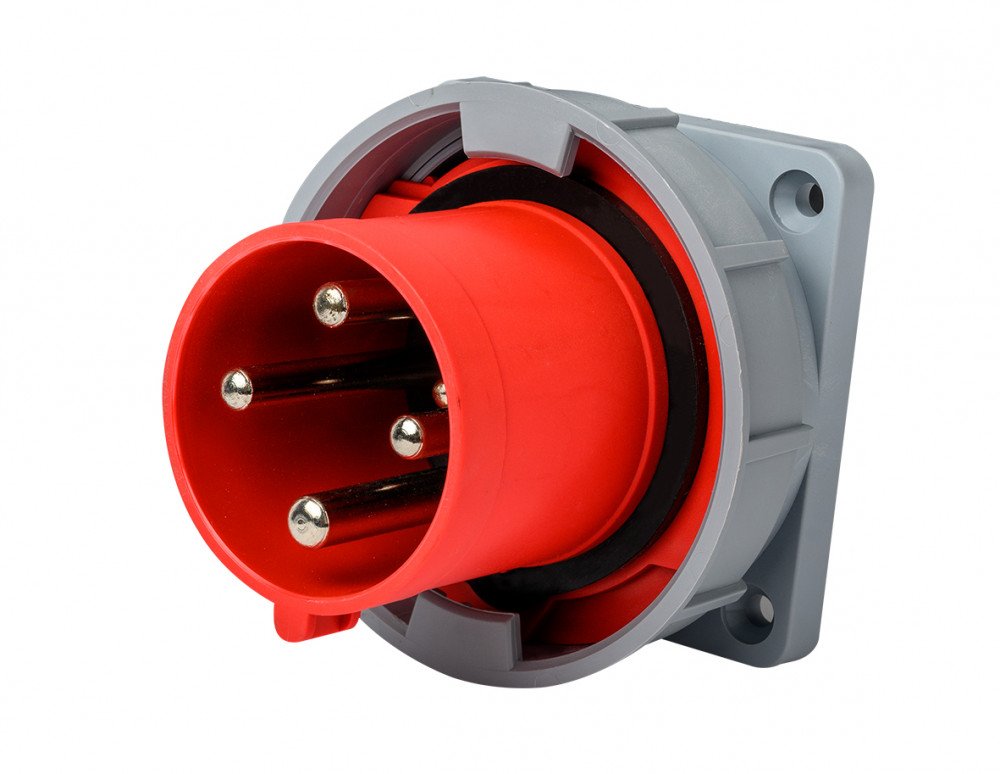 Вилка для скрытой проводки серии ВЩ-103 Dekraft, номинальный ток 16 А, диапазон рабочего напряжения 380-415 В AC, степень пыле-влаго защиты IP67, количество полюсов 3Р+РЕ, код CEE 614W.