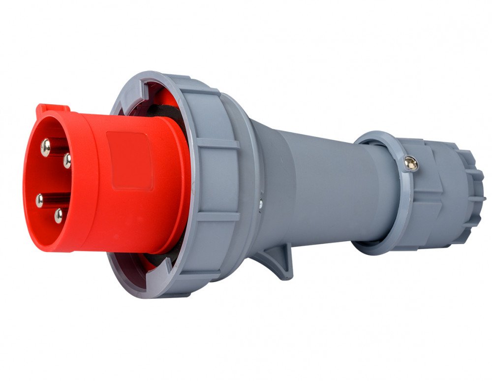 Вилка переносная серии ВП-103 Dekraft, номинальный ток 63 А, диапазон рабочего напряжения 380-415 В AC, степень пыле-влаго защиты IP67, количество полюсов 3Р+РЕ, код CEE 034W.