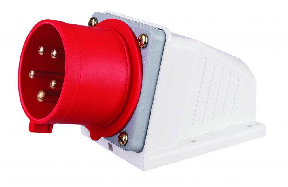 Вилка стационарная серии ВС-103 Dekraft, номинальный ток 32 А, диапазон рабочего напряжения 380-415 В AC, степень пыле-влаго защиты IP44, количество полюсов 3Р+РЕ+N, код CEE 525.