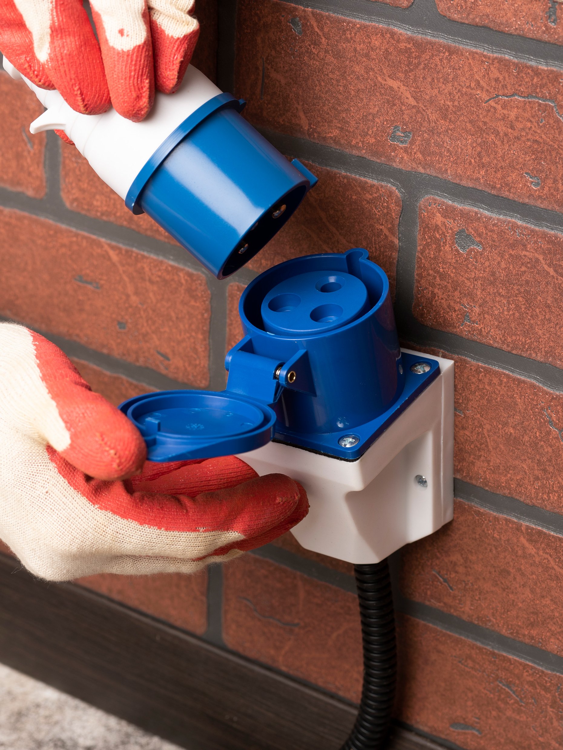 Силовые штепсельные разъемы предназначаются для подключения мобильного или стационарного электрооборудования к сети переменного тока частотой 50 Гц с напряжением 220 или 380 В. Разъемы применяются для обеспечения электропитания промышленного и строительного электрооборудования и электроинструмента, передвижных магазинов и точек питания и т. п. Соответствуют стандарту CEE.