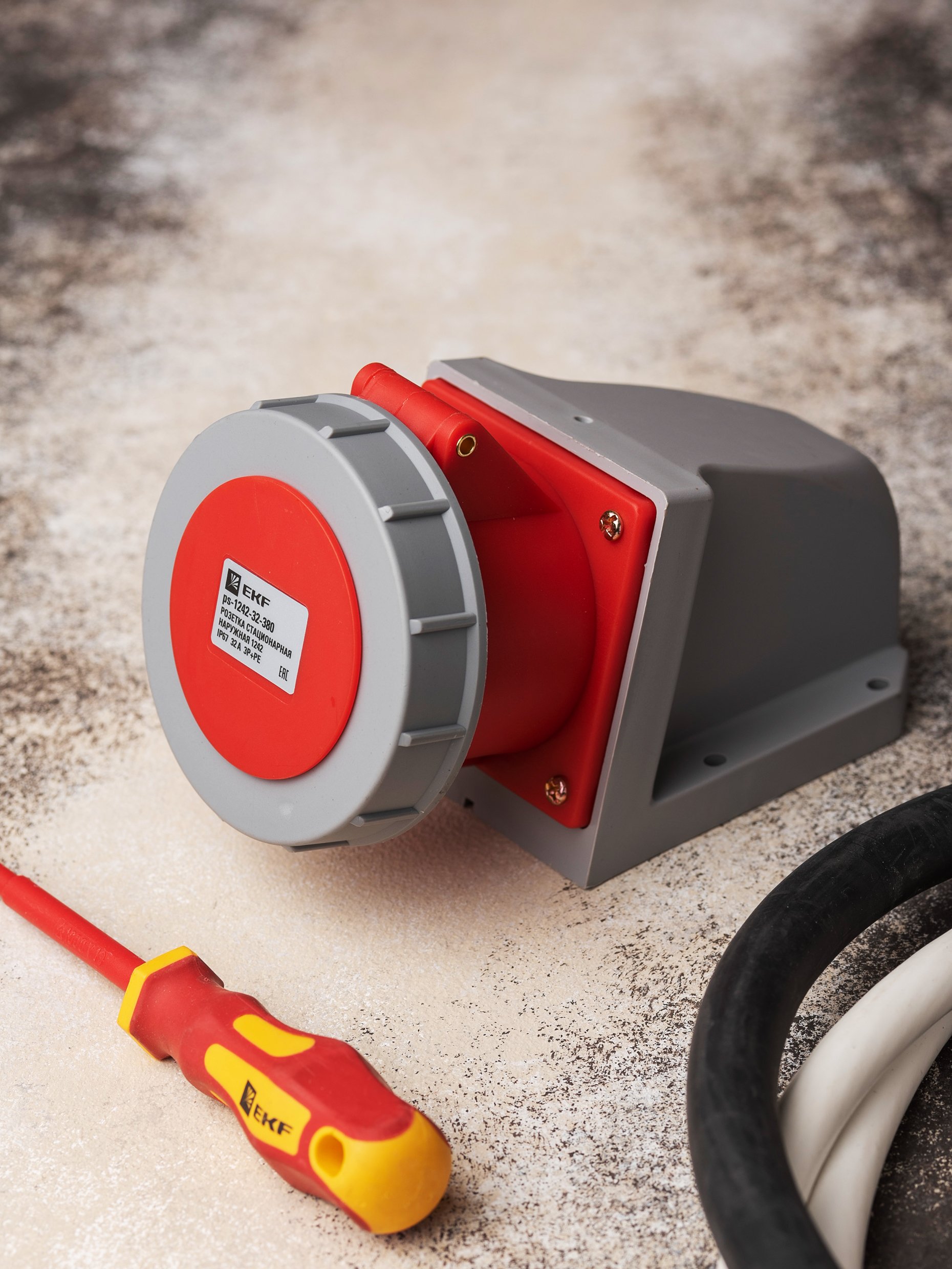 EKF PROxima Розетка стационарная наружная 1242 3Р+РЕ 32А 380В IP67, арт ps-1242-32-380
