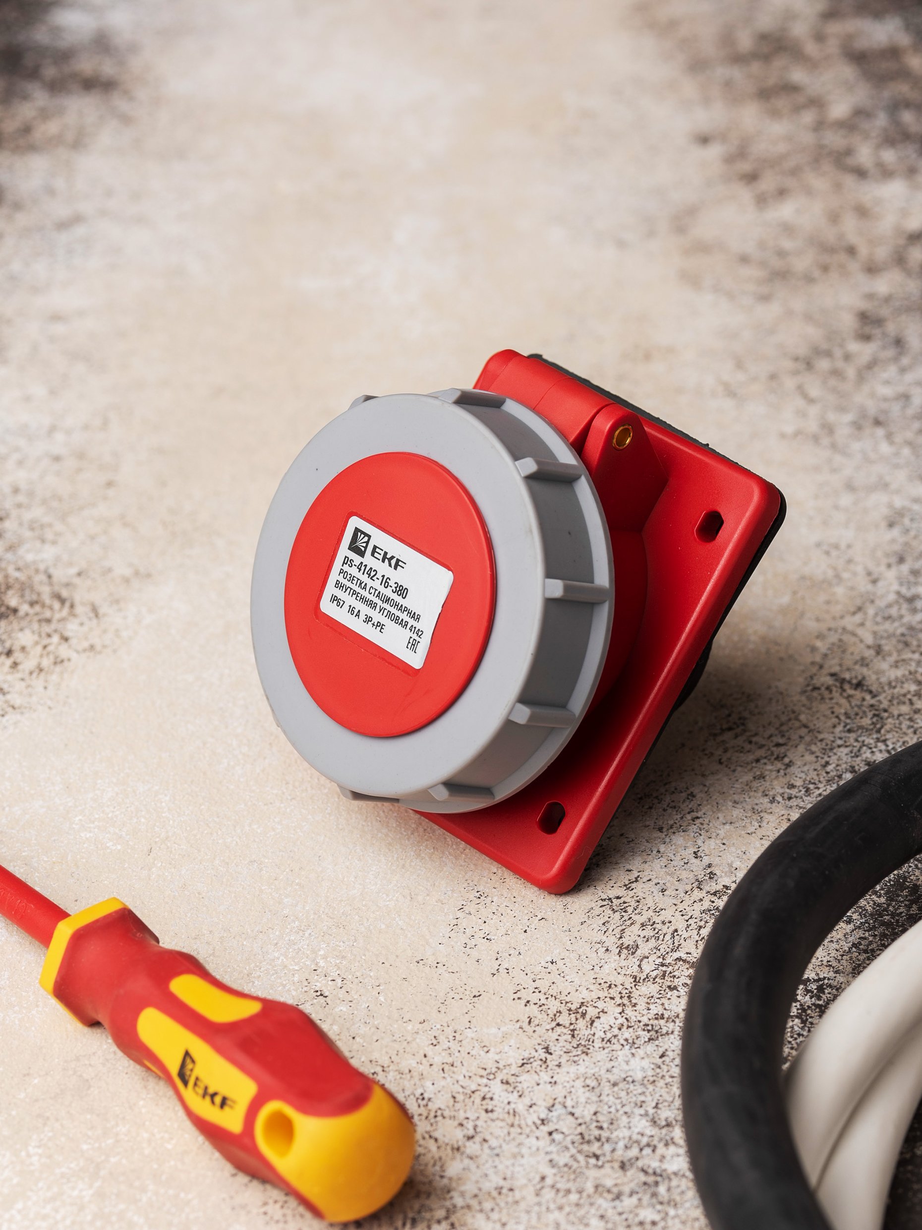 EKF PROxima Розетка стационарная внутренняя угловая 4142 3Р+РЕ 16А 380В IP67, арт ps-4142-16-380