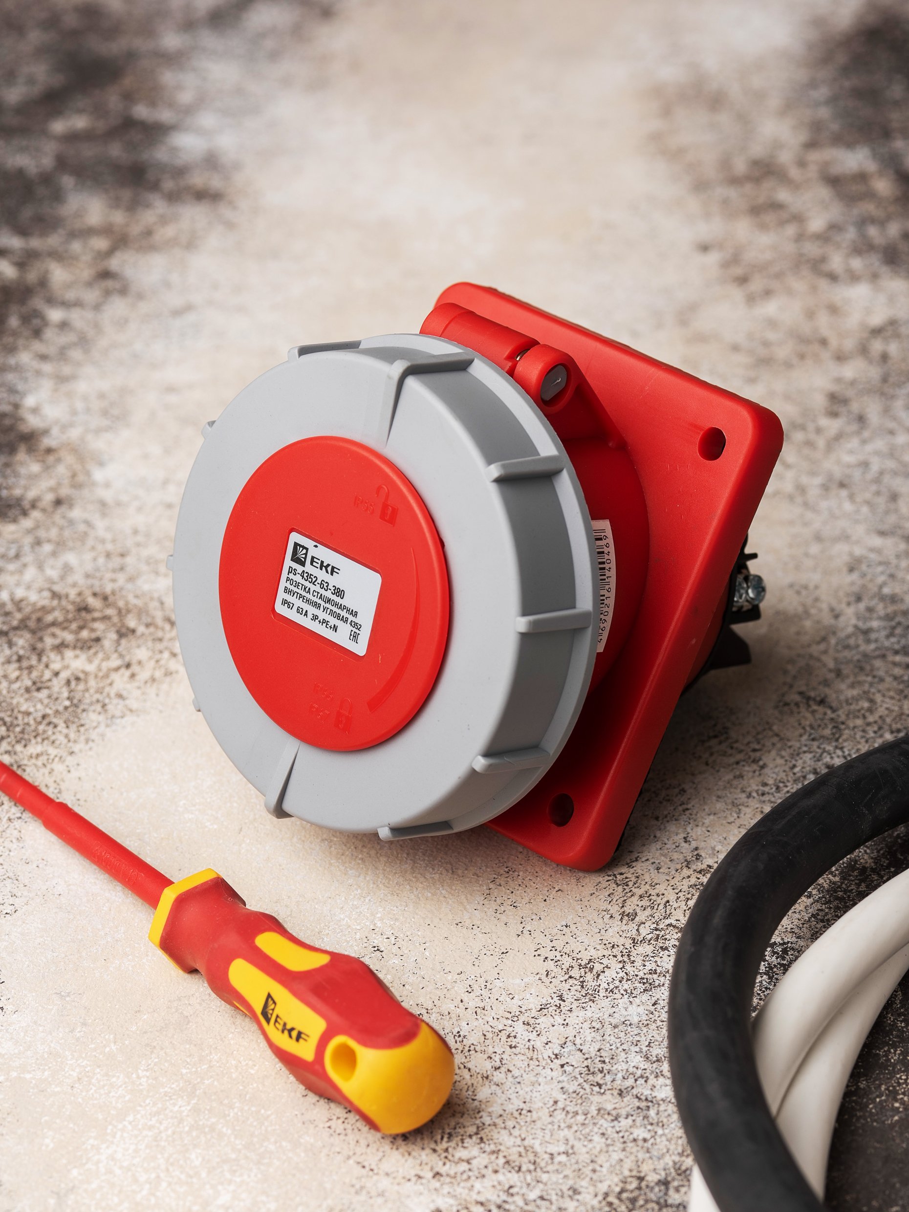 EKF PROxima Розетка стационарная внутренняя угловая 4352 3Р+РЕ+N 63А 380В IP67, арт ps-4352-63-380