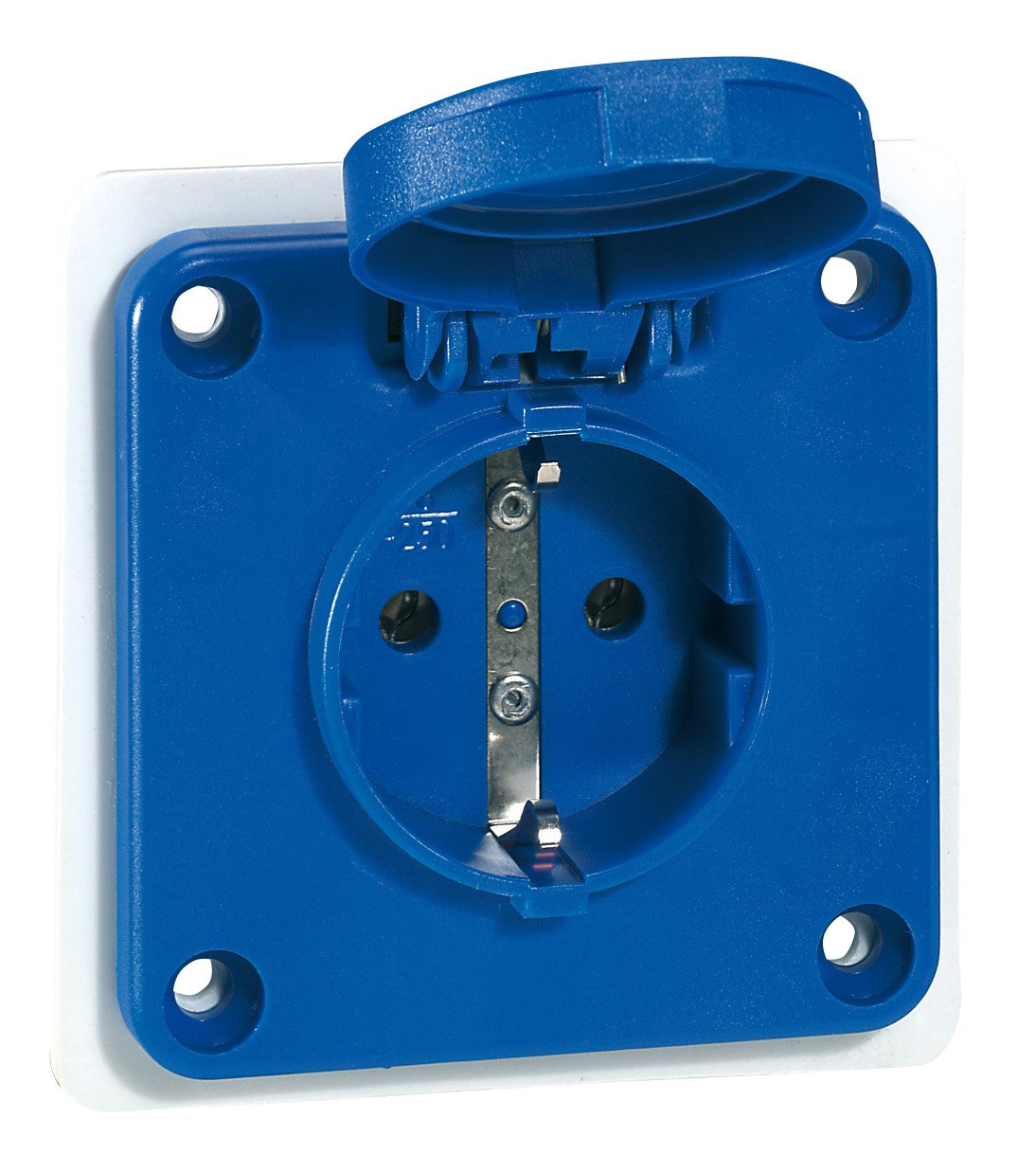 —Legrand Розетка немецкий стандарт 16А 2К+З 230В IP44 син.75х75 со шторками, арт 057676