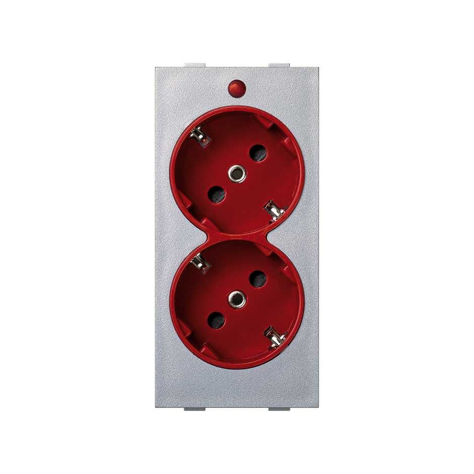 Simon Алюминий/Красная Розетка двойная, 2к+з Schuko, 16А, 250В, Cima-модуль 52x108 мм от производителя Simon. Артикул производителя S1-6-8.