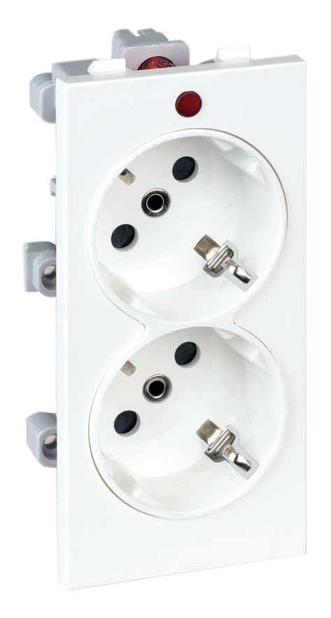 Simon Connect Белая Розетка с заземлением 2x2P+E, сдвоенная, S-модуль, с индикат.налич.напряжения,16А, 250В от производителя Simon. Артикул производителя S1-9.
