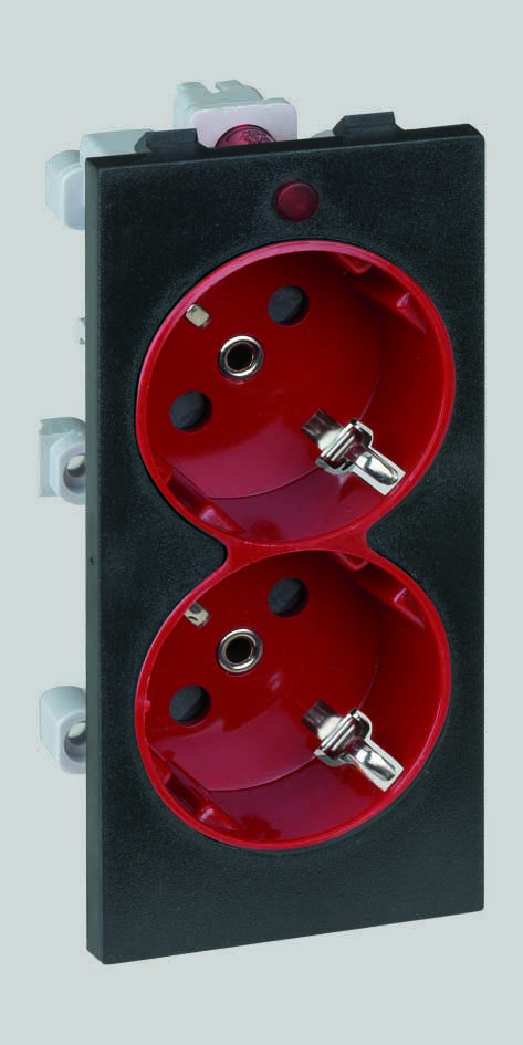 Simon Connect Графит/Красная Розетка двойная, 2к+з Schuko, 16А, 250В, Cima-модуль 52x108 мм от производителя Simon. Артикул производителя S1-6-14.