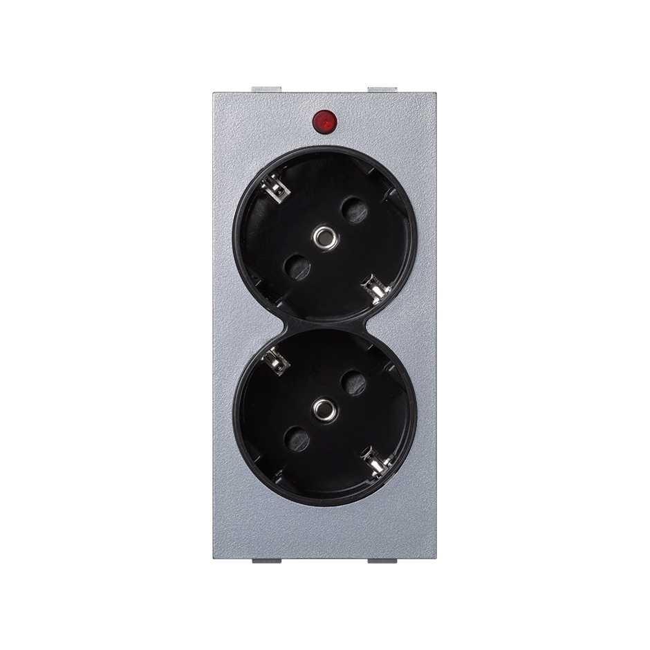 Simon Connect Розетка двойная с заземлением и шторками Schuko 2Р+Е 16A 250В~ цвета графит/Алюминий с винтовым подключением от производителя Simon. Артикул производителя S1-14-8.