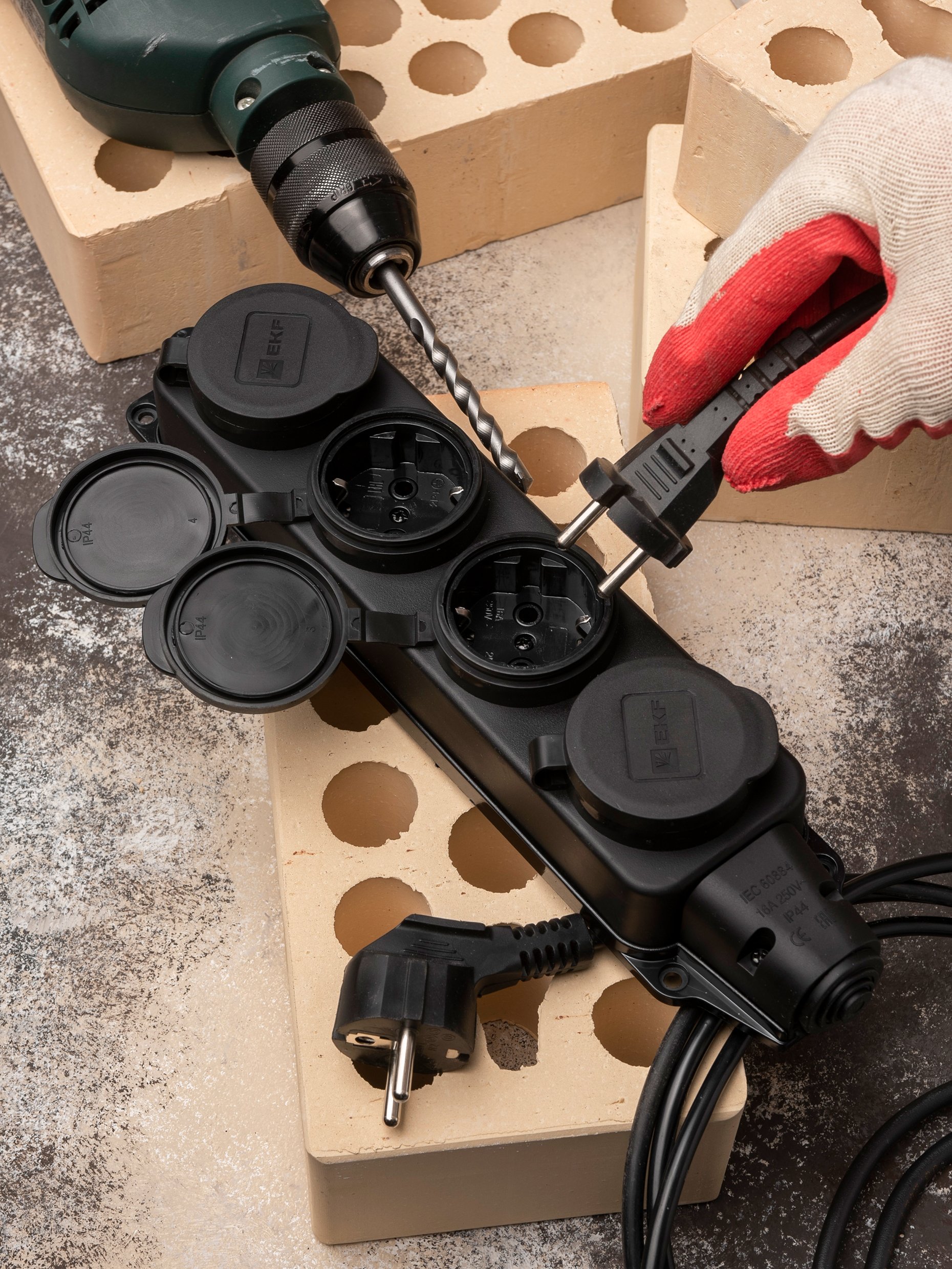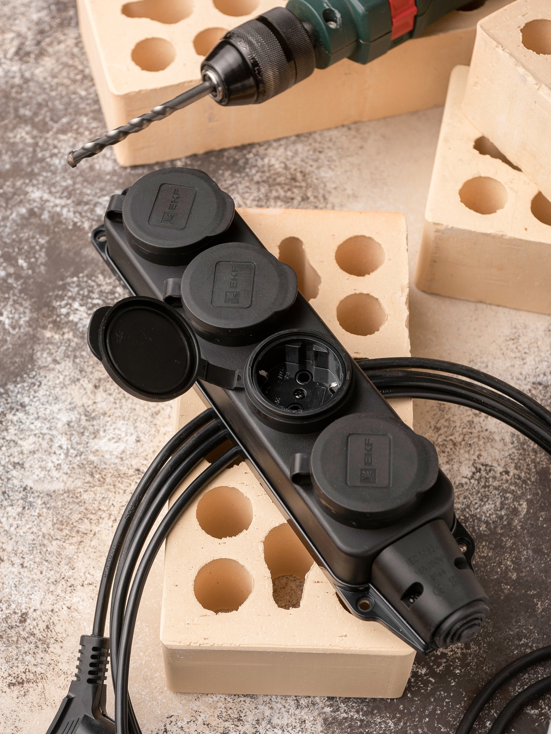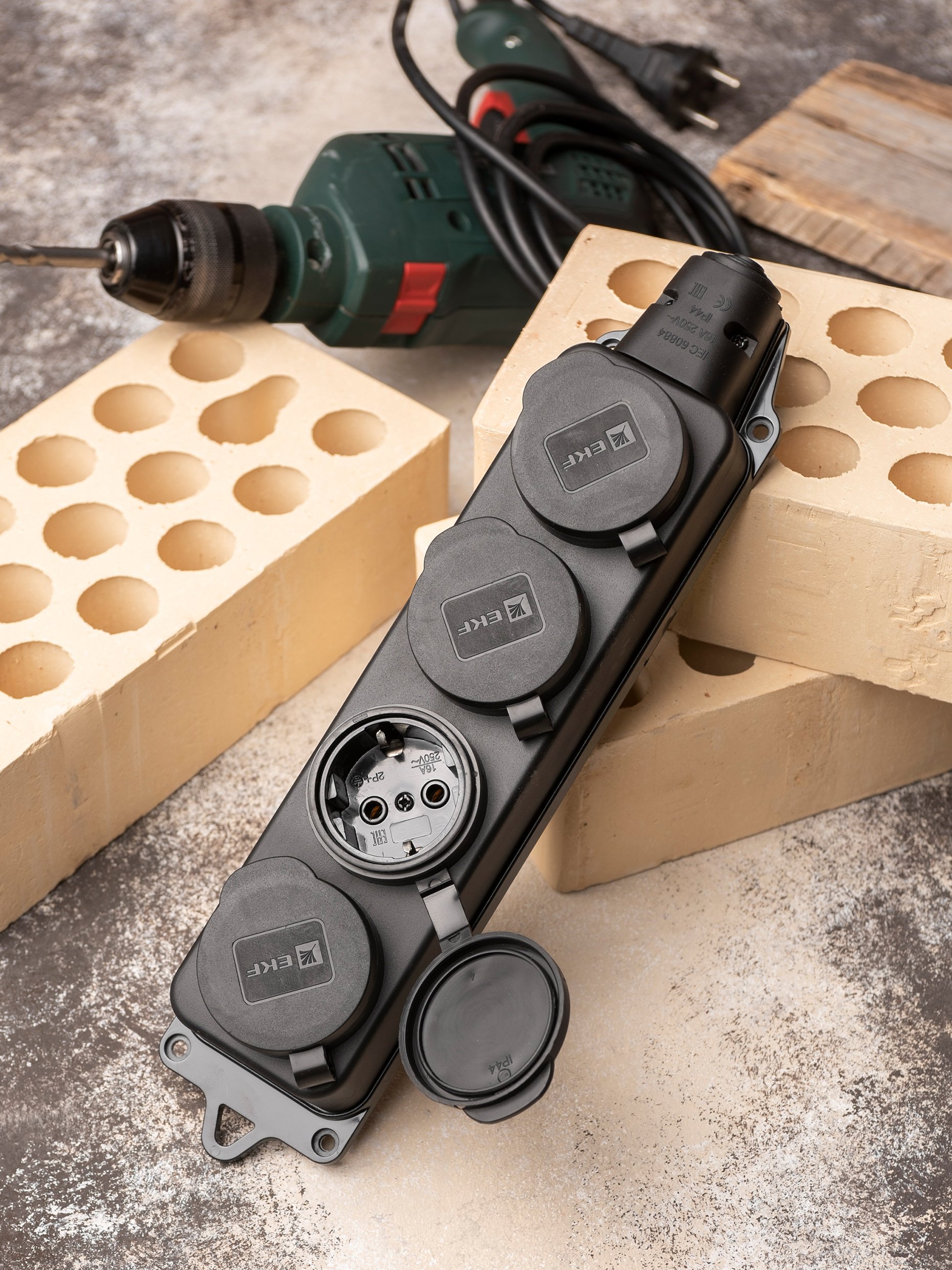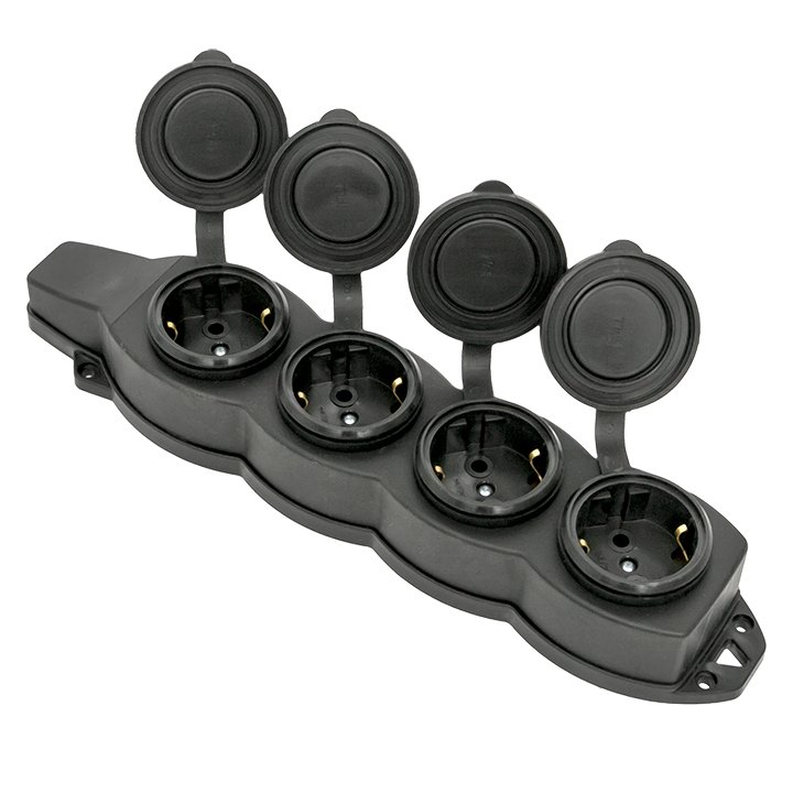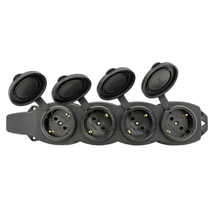 Четырехместная розетка (колодка) RPS-015 Basic предназначена для создания точки подключения к электрической сети. Может применяться как в мобильном, так и в стационарном исполнении (крепление к вертикальной или горизонтальной поверхности). Позволяет подключать до четырех приборов одновременно с сумарным током потребления 16А к сети 230В / 50Гц. Колодка имеет кабельный ввод и каждое гнездо закрывается защитной крышкой, что позволяет обеспечить степень защиты IP44 даже в нерабочем положении. Соответствует стандарту Shuko.